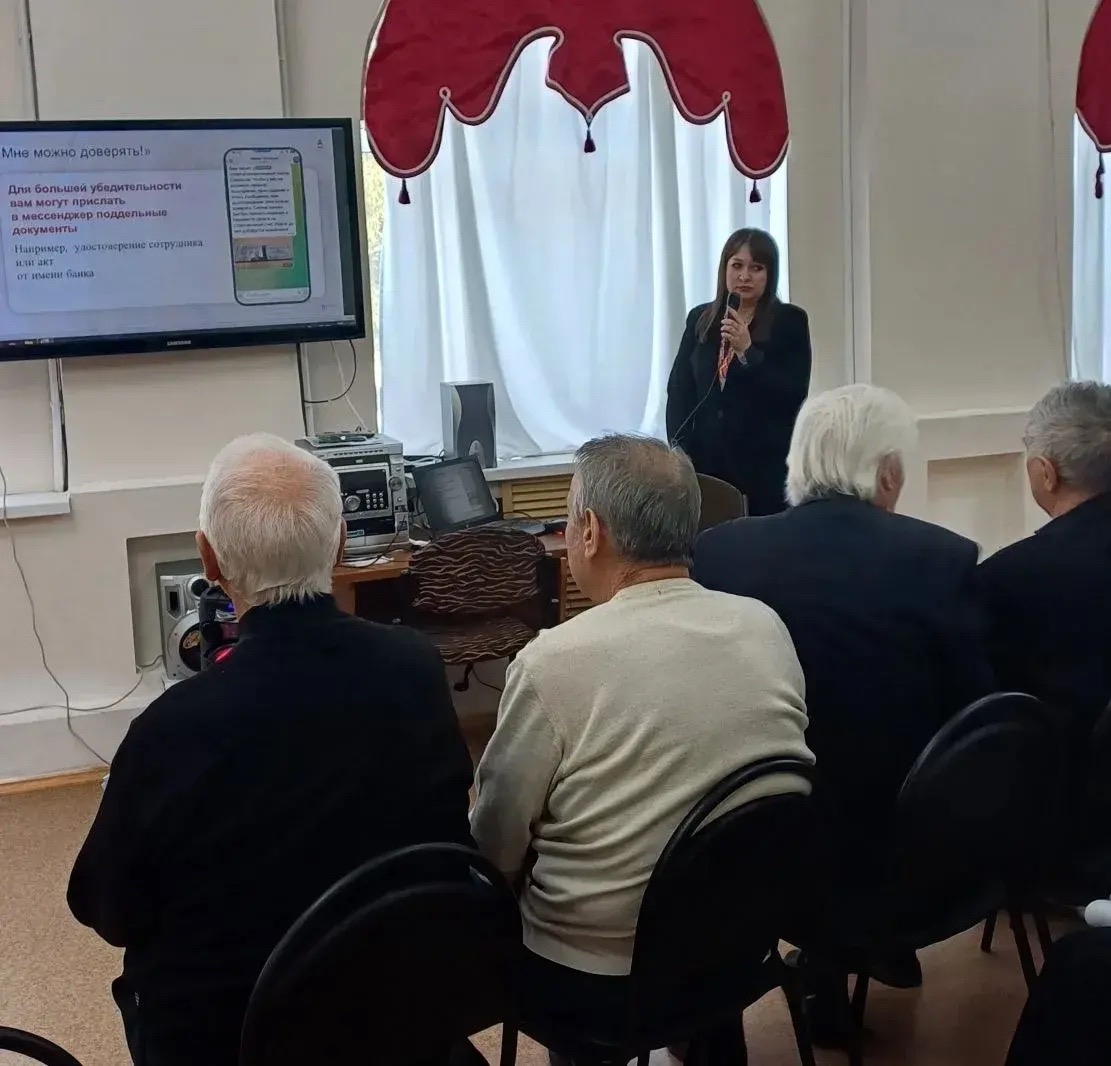 Состоялся диалог между работниками "Альфа банка", "ВТБ" и нашими ветеранами. Руководители местных отделений банков Захарова Олеся и Шубина Кристина подробно рассказали, показали презентацию о видах телефонных мошеннических деяний, которыми атакуют пожилое население.