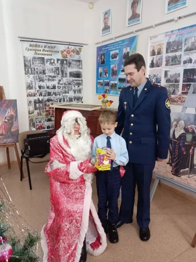 Поздравить ребят с наступающим праздником пришли необычные гости: в роли доброго Деда Мороза выступила председатель Совета ветеранов Галия Замиловна Халимова. Её верным помощником стал старший инспектор группы пробации уголовно-исполнительной инспекции Альфред Насыров.