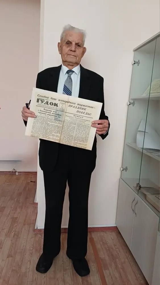 Почётный житель нашего города, ветеран образования Николай Степанов принёс в наш музей ценный исторический документ -оригинальную газету "Гудок", изданную 9 мая 1945 года! Газета, где напечатан Акт о безоговорочной капитуляции германских вооружённых сил. Если вам интересно, приходите, увидите, почитаете!