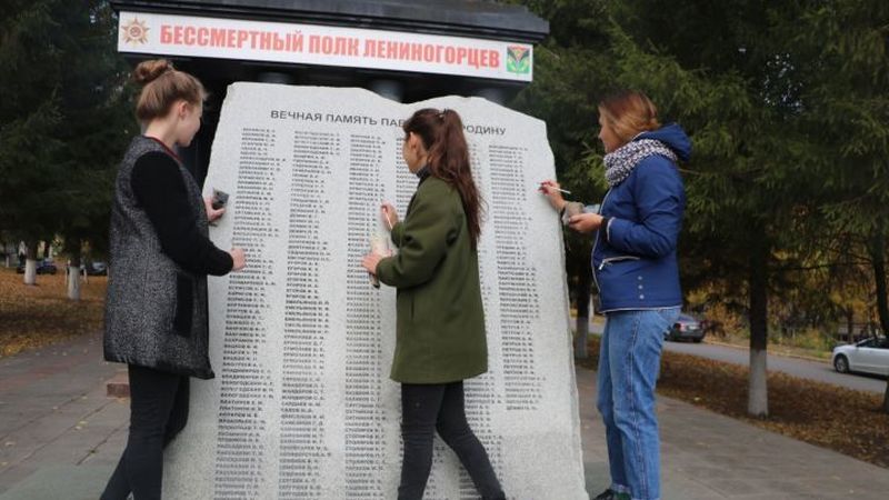 Памятник павшим героям должен выглядеть достойно. Более четырехсот имен солдат, сложивших головы на поле брани, запечатлены на мемориальной доске, установленной на Аллее героев. Важную миссию по восстановлению поручили профессионалам, а именно, учащимся художественно-педагогического колледжа. Осень в Лениногорске в этот день пахла краской и растворителем, а кисточки аккуратно вырисовывали буквы имен и фамилий героев нашего города. Просьба лениногорцев была выполнена, буквам на барельефе вернули «читабельный» вид. Важно отметить, что обновление их будет регулярным, потому что сырая погода может испортить любой знак, нанесенный краской.