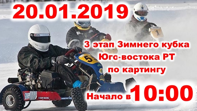 Уважаемые гости и жители города Лениногорск, приглашаем Вас на соревнования по картингу "3 этап Зимнего кубка Юго-востока РТ", которые пройдут 20 января 2019 года. Начало в 10.00.