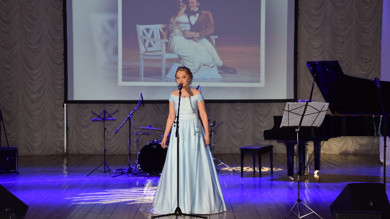 Зрители в актовом зале Дворца культуры встретили Алису Мамину громкими аплодисментами. Она исполнила арию Марфы из оперы Н. Римского-Корсакова «Царская невеста». Ей аккомпанировал на фортепиано Илья Бажин, который также поет в ансамбле и читает стихи.
