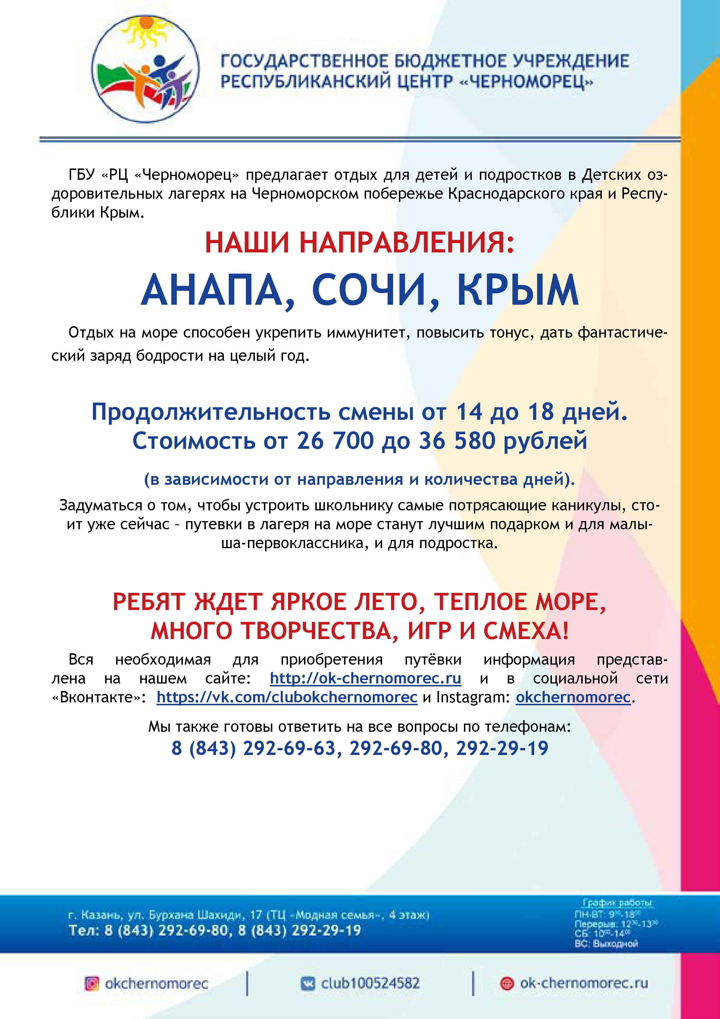 Принимаются заявки в детские оздоровительные лагеря Черноморского побережья