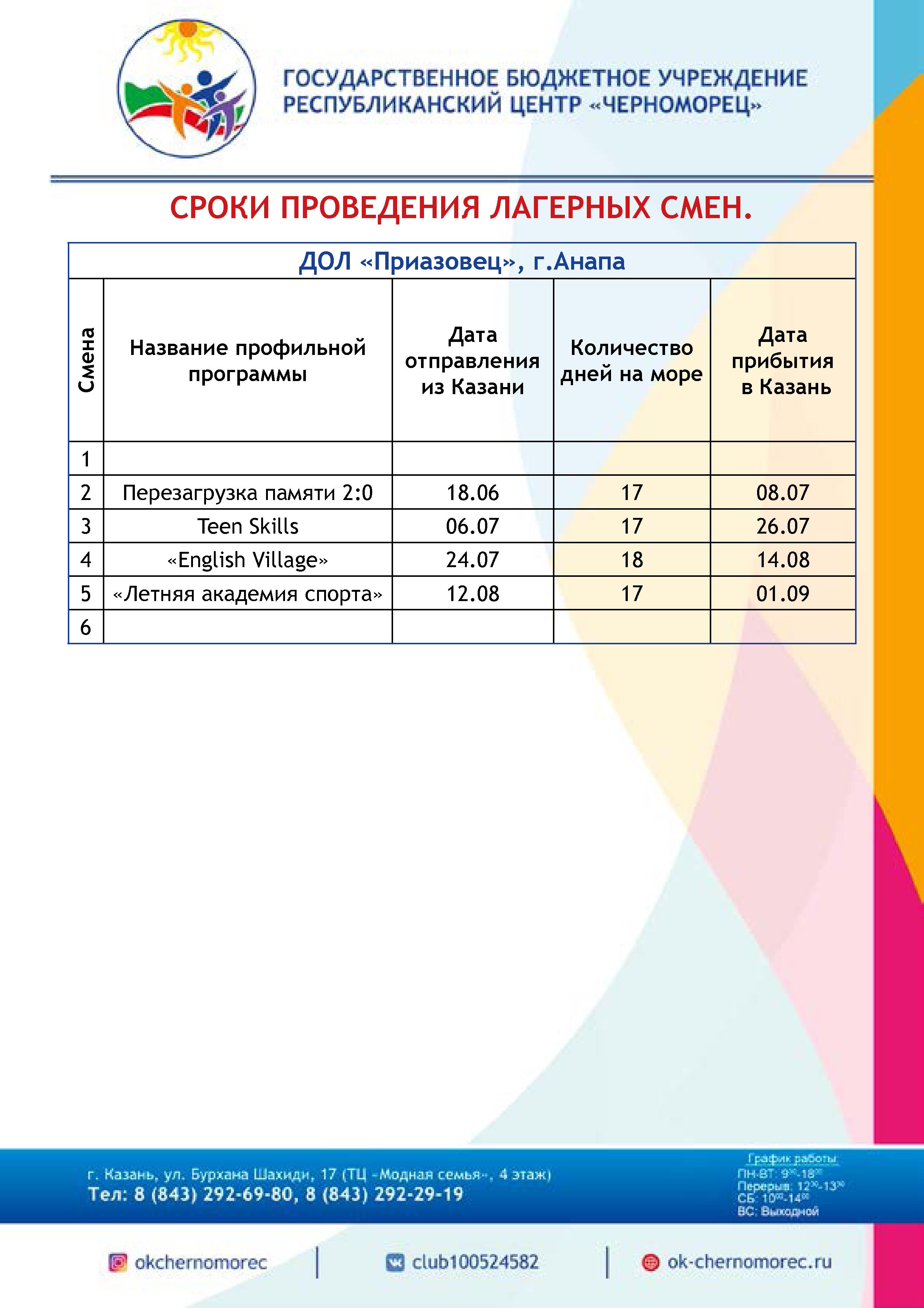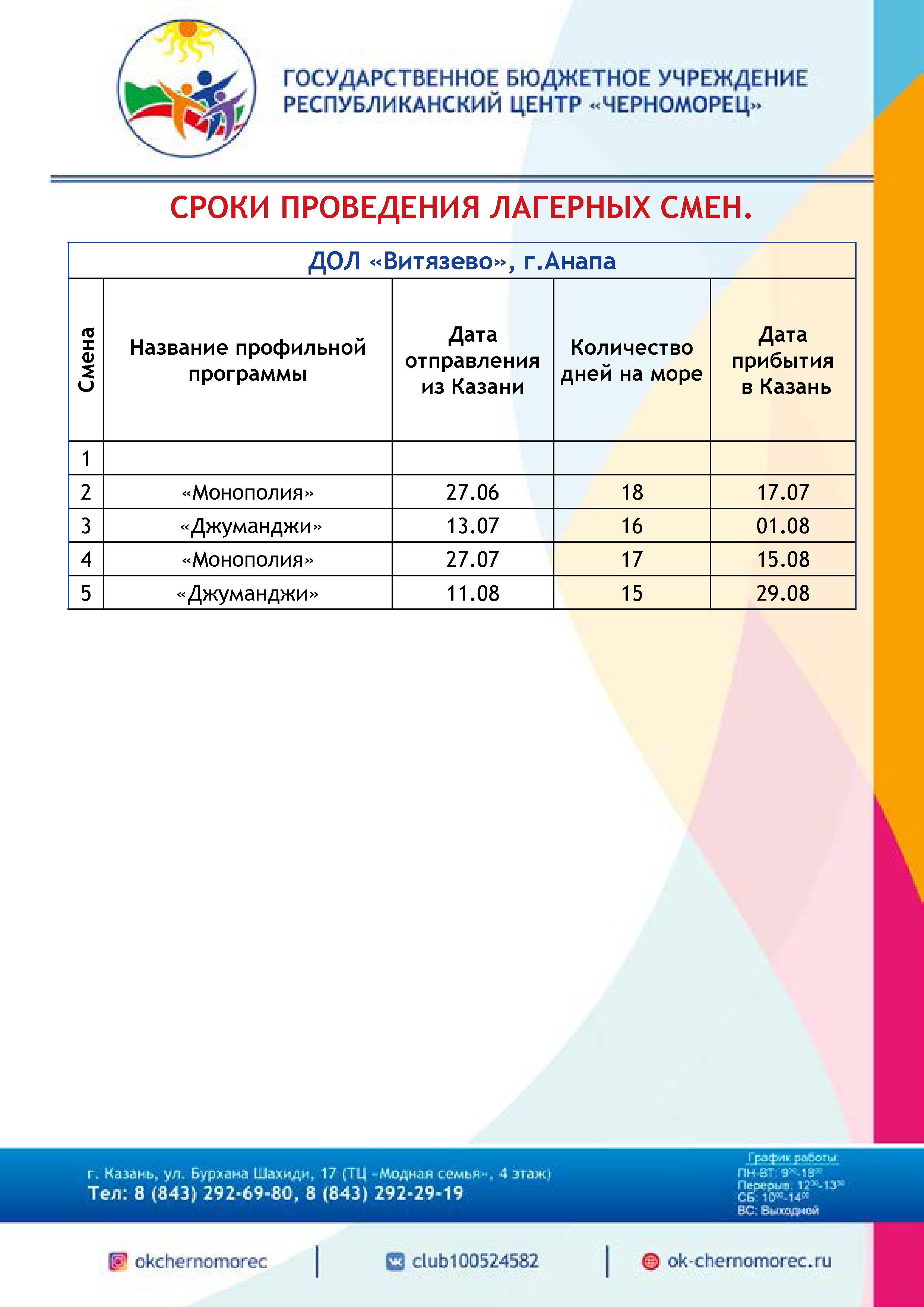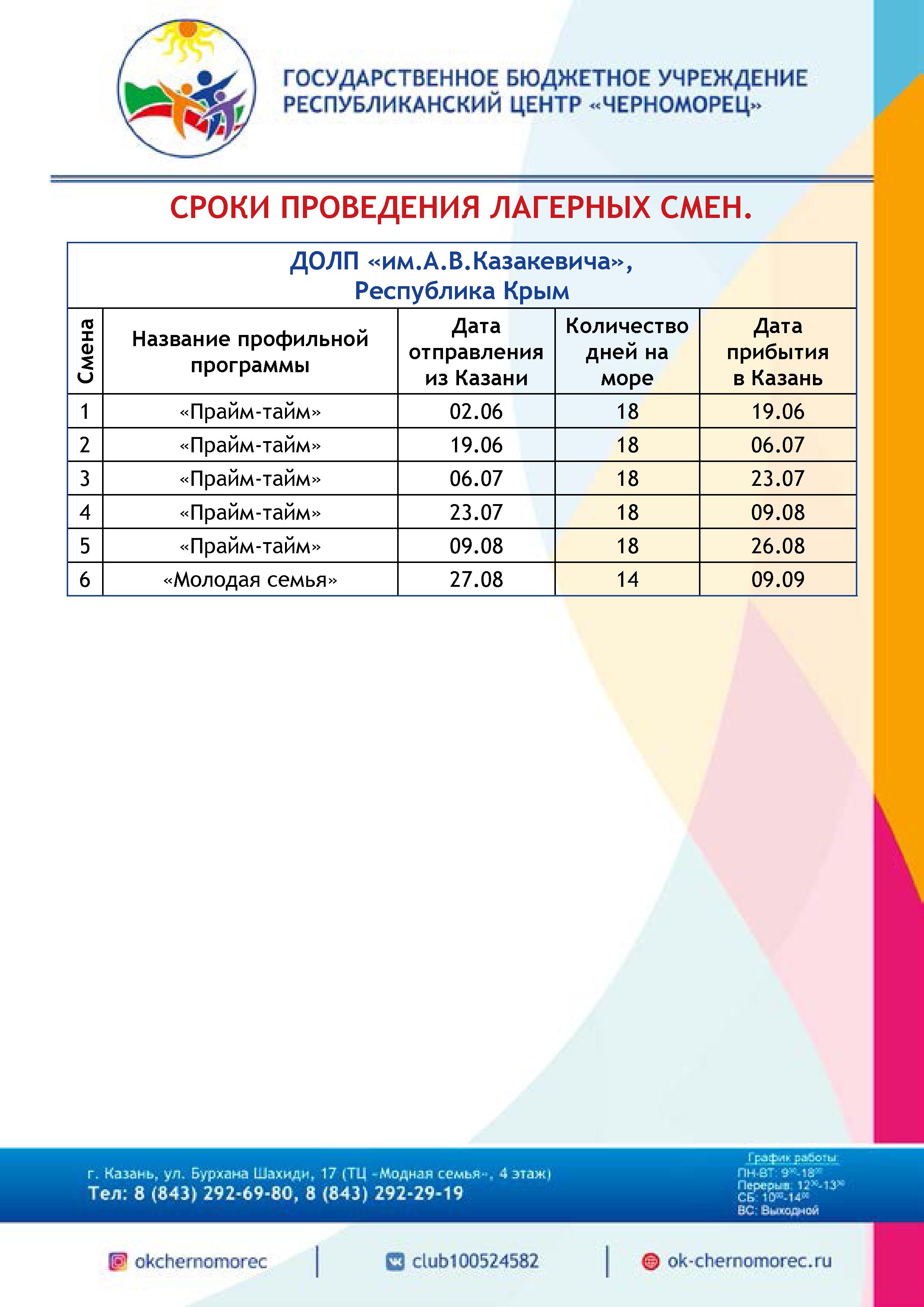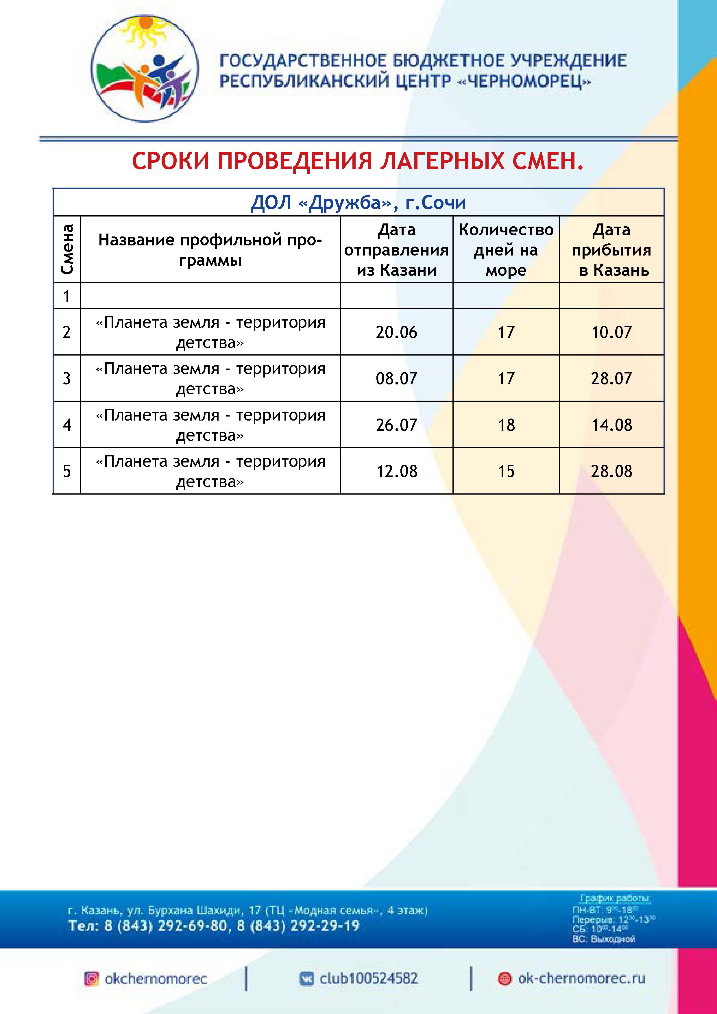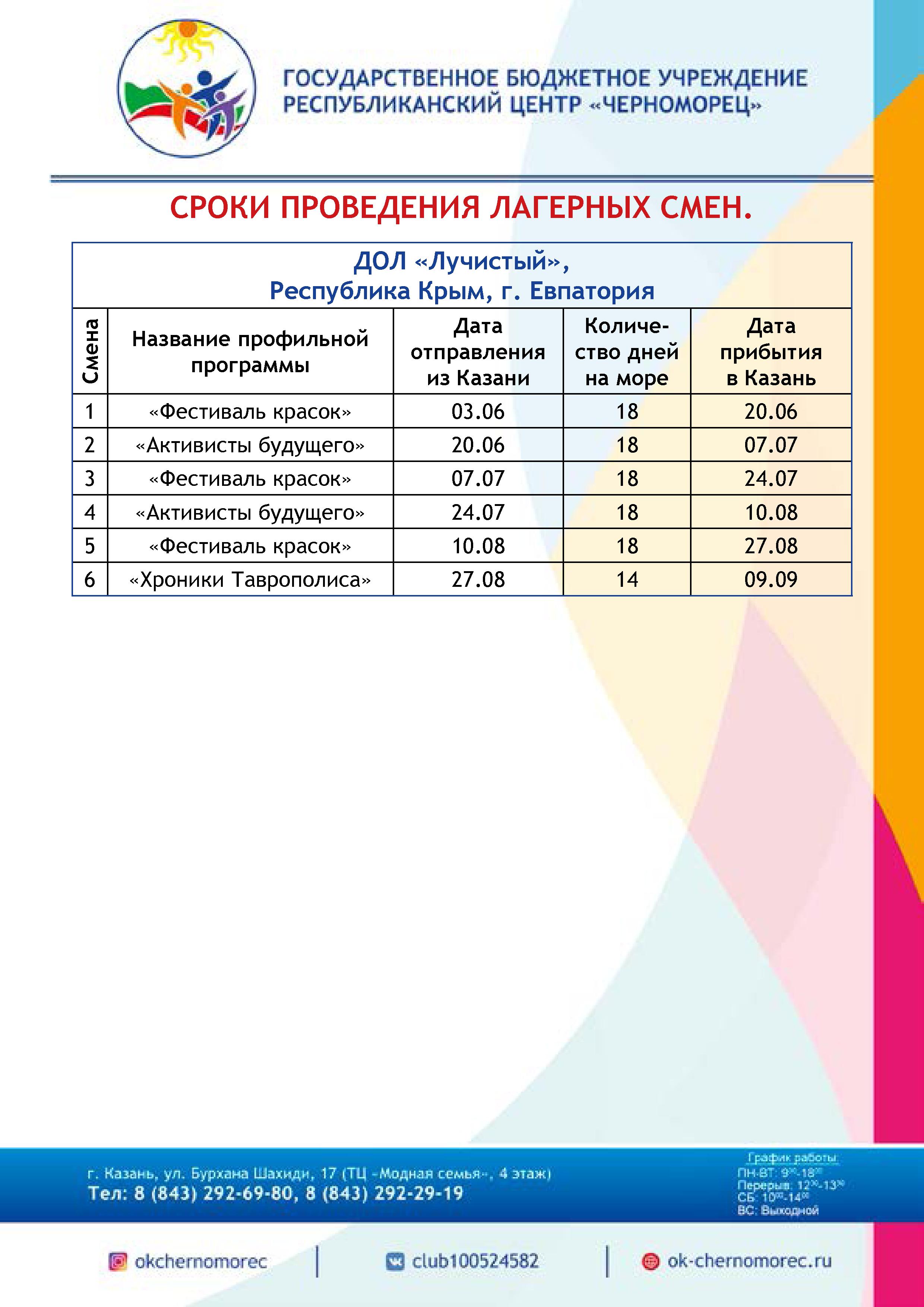 Планируемые смены в детских оздоровительных лагерях на черноморском побережье в предстоящую оздоровительную кампанию 2019 года.