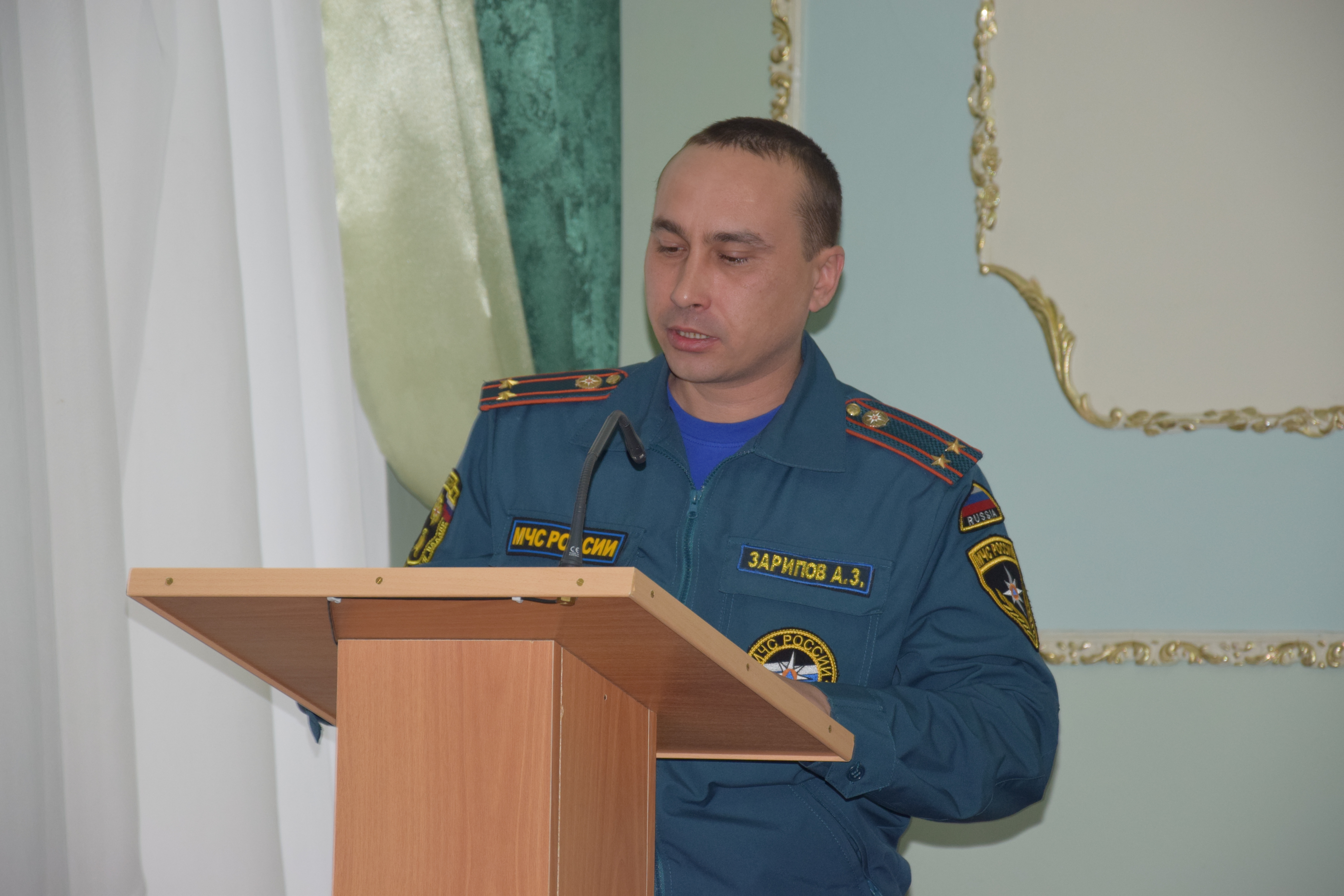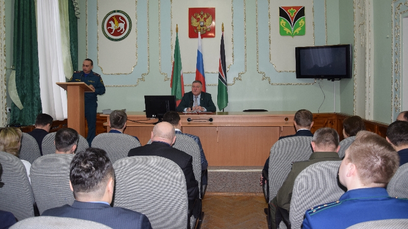 Глава Лениногорского района Рягат Хусаинов акцентировал внимание присутствующих на проведении инструктажа населения, сотрудников о мерах по противопожарной безопасности, соблюдении правил пожарной безопасности, о действиях сил и средств в период весенних паводков, очистке улиц, тротуаров, дворовых территорий и крыш домов от снега и наледи, подготовке сельскохозяйственной техники к весенне-полевым работам. По завершению руководителям были даны соответствующие указания.