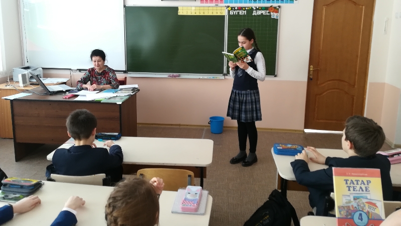 В литературной гостиной «Туган яктан илһам алып» учащиеся 4 класса познакомились с жизнью и творчеством наших земляков- Заслуженным работником культуры Татарской АССР, Заслуженным работником культуры РСФСР, поэтессой Розой Хафизовой; Членом союза писателей Республики Татарстан, Лауреатом премий им. Ш. Бикчурина, им. Сажиды Сулеймановой, поэтом Тагиром Шамсуаровым; Заслуженным деятелем искусств Татарской АССР, Народным художником Татарской АССР Маснави Хаертдиновым.