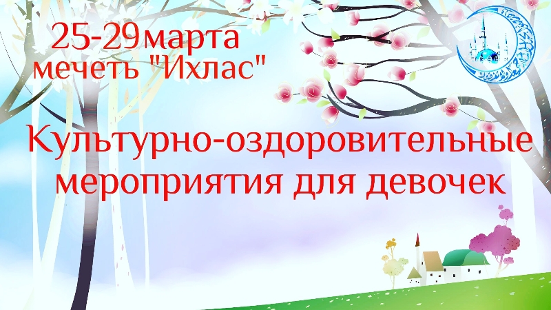 В целях духовного и физического развития подрастающих поколения при мечети «Ихлас» г. Лениногорска с 25 по 29 марта состоятся культурно-оздоровительные мероприятия для девочек школьного возраста города и района.