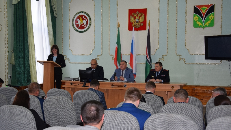 С докладам «О дополнительных мерах по предотвращению террористических угроз и повышению готовности к минимизации и ликвидации последствий возможных террористических актов в период подготовки и проведения мероприятий, посвященных ко Дню Весны и Труда, 74-й годовщины Победы в Великой Отечественной войне» выступил начальник отдела МВД России по Лениногорскому району Айбулат Юнусов.