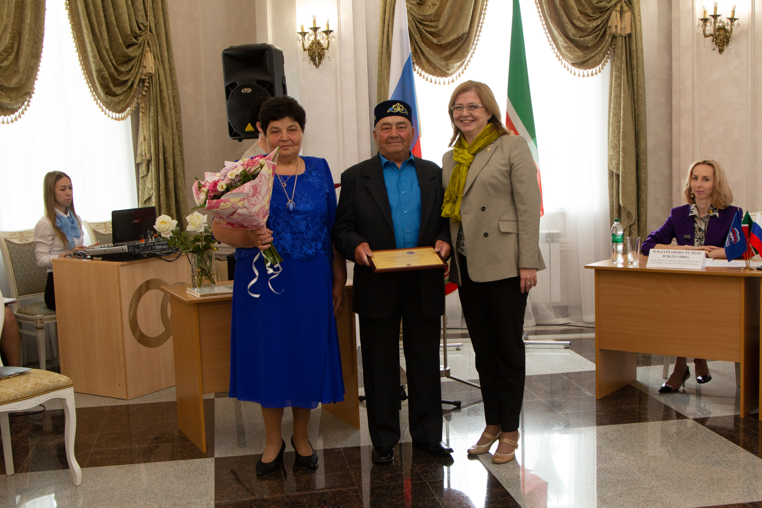 На мероприятии присутствовали: начальник Управления ЗАГС Кабинета Министров Республики Татарстан Нигматуллина Гульшат Радифовна; глава Лениногорского муниципального района, мэр города Лениногорск Хусаинов Рягат Галиагзамович; начальник отдела ЗАГС исполнительного комитета муниципального образования «Лениногорский муниципальный район» Республики Татарстан Миннигалямова Елена Яковлевна, которые в своей приветственной речи поздравили супругов Юнусовых с таким знаменательным событием, пожелали крепкого здоровья, семейного благополучия на долгие годы и вручили юбилярам благодарственные письма, памятные подарки и юбилейное свидетельство о регистрации брака.