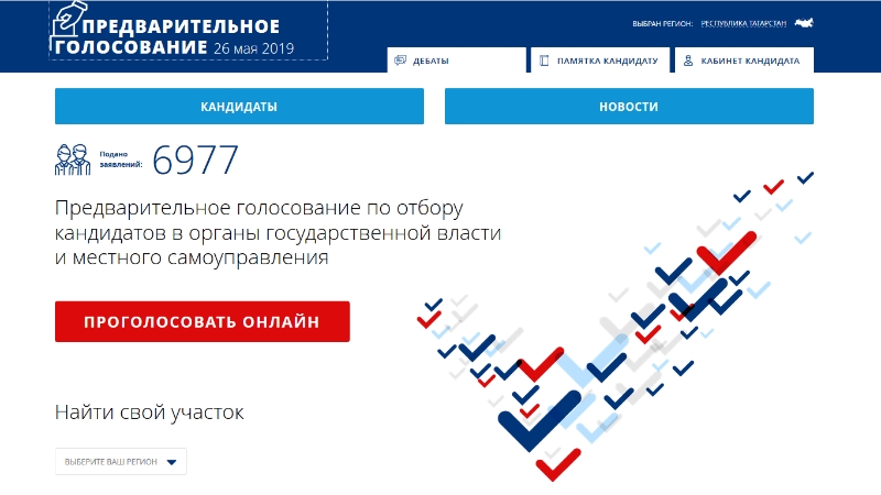 Проголосовать 26 мая может каждый житель Татарстана, имеющий право голоса. Голосование проводится как на участках, так и дистанционно, в электронной форме. Онлайн-голосование проводится на сайте предварительного голосования «Единой России» https://pg.er.ru/ . Доступ к голосованию на сайте имеют избиратели, авторизированные на федеральном портале госуслуг.