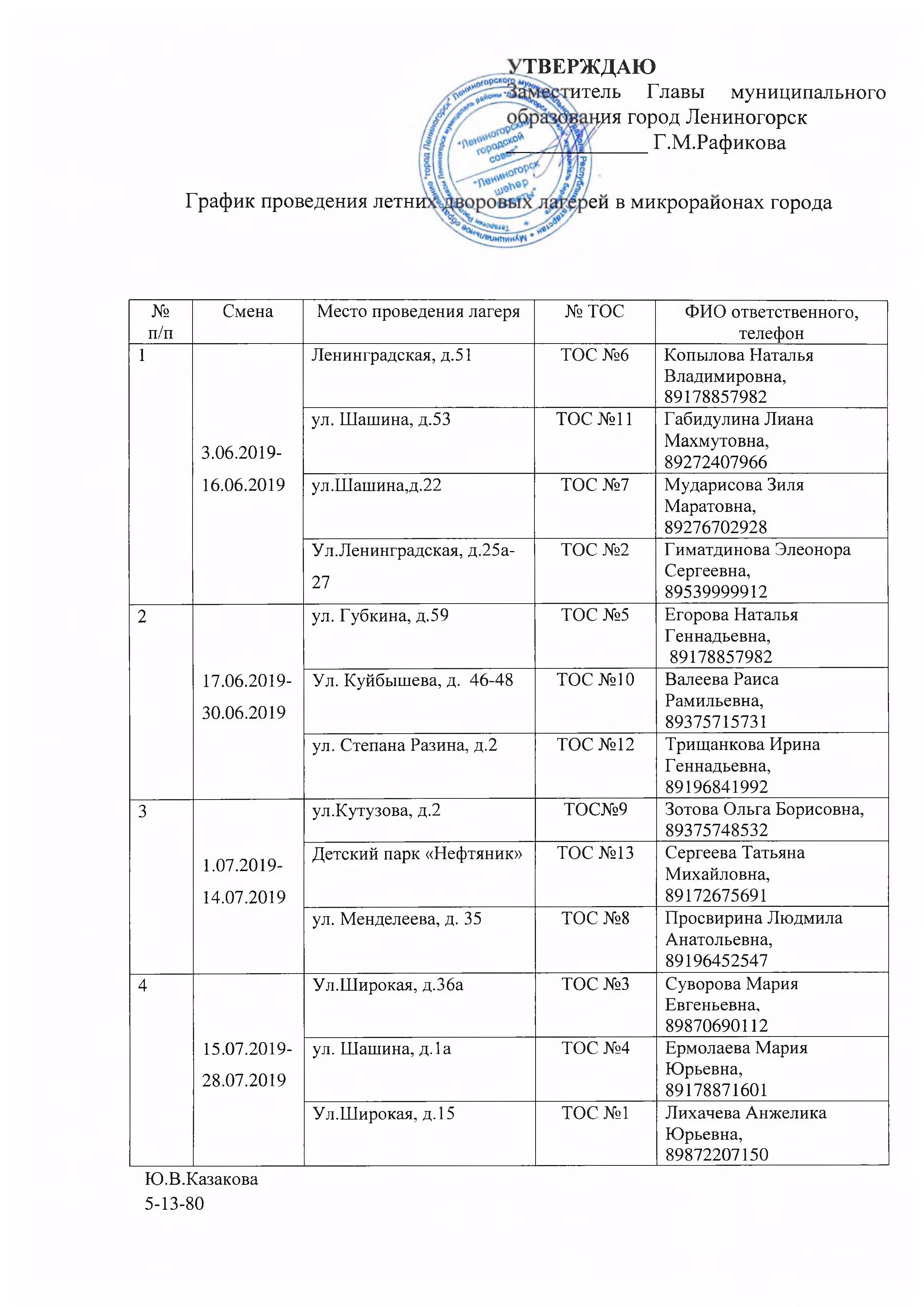 На сегодняшний день эти лагеря посещают более 45 детей из многодетных семей и ребята, не попавшие в другие лагеря. Юных горожан ждут интересные спортивные состязания с призами и подарками, которые будут организованы в парковых зонах – «Юбилейный», «Скейт-парк», парк им.Горького. Кроме этого запланированы экскурсии в МЧС, центральную библиотеку, мечеть, музеи.