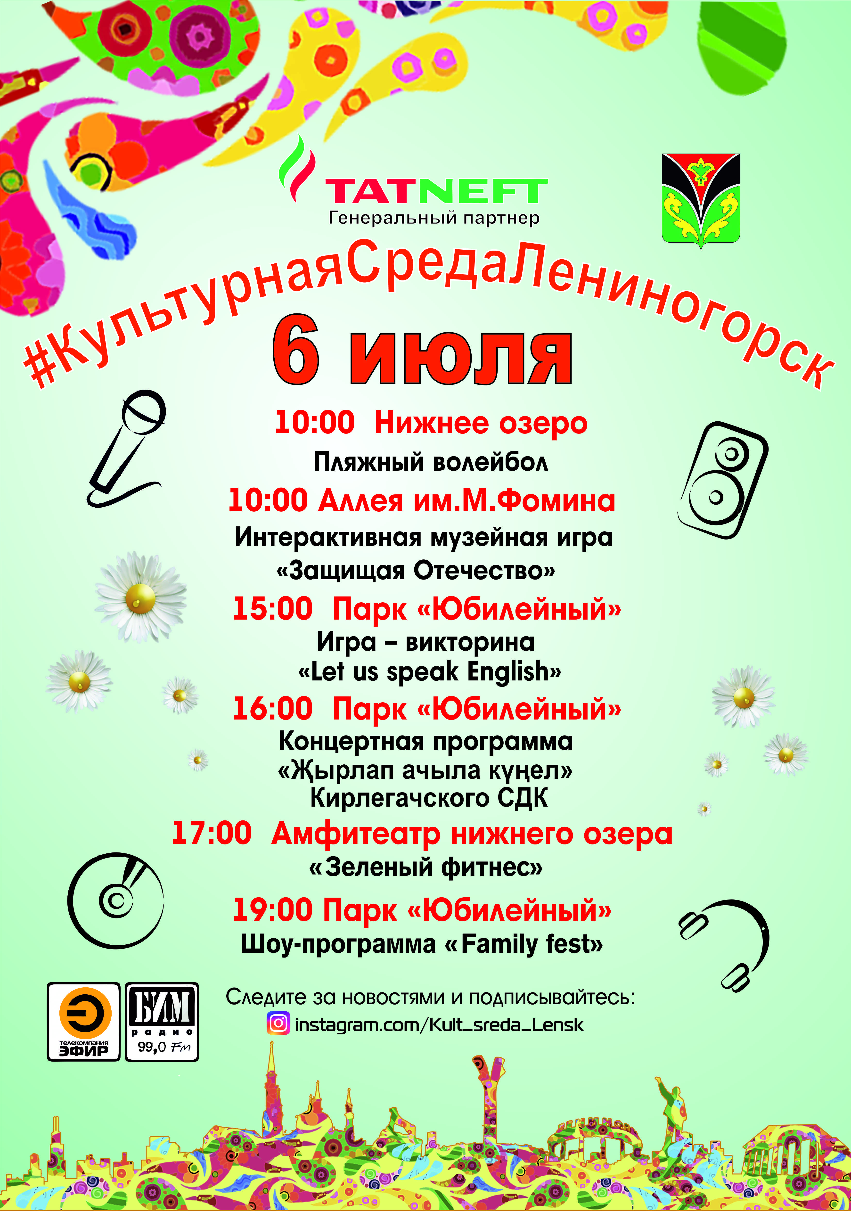 6 июля проект «Культурная среда города» вновь приготовил много интересного и приглашает всех посетить культурно-развлекательные мероприятия.