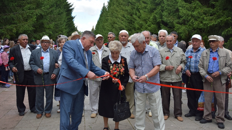 Глава района Рягат Хусаинов, председатель Совета ветеранов Анатолий Кондратьев, почетные ветераны и жители города возложили цветы к мемориалу.