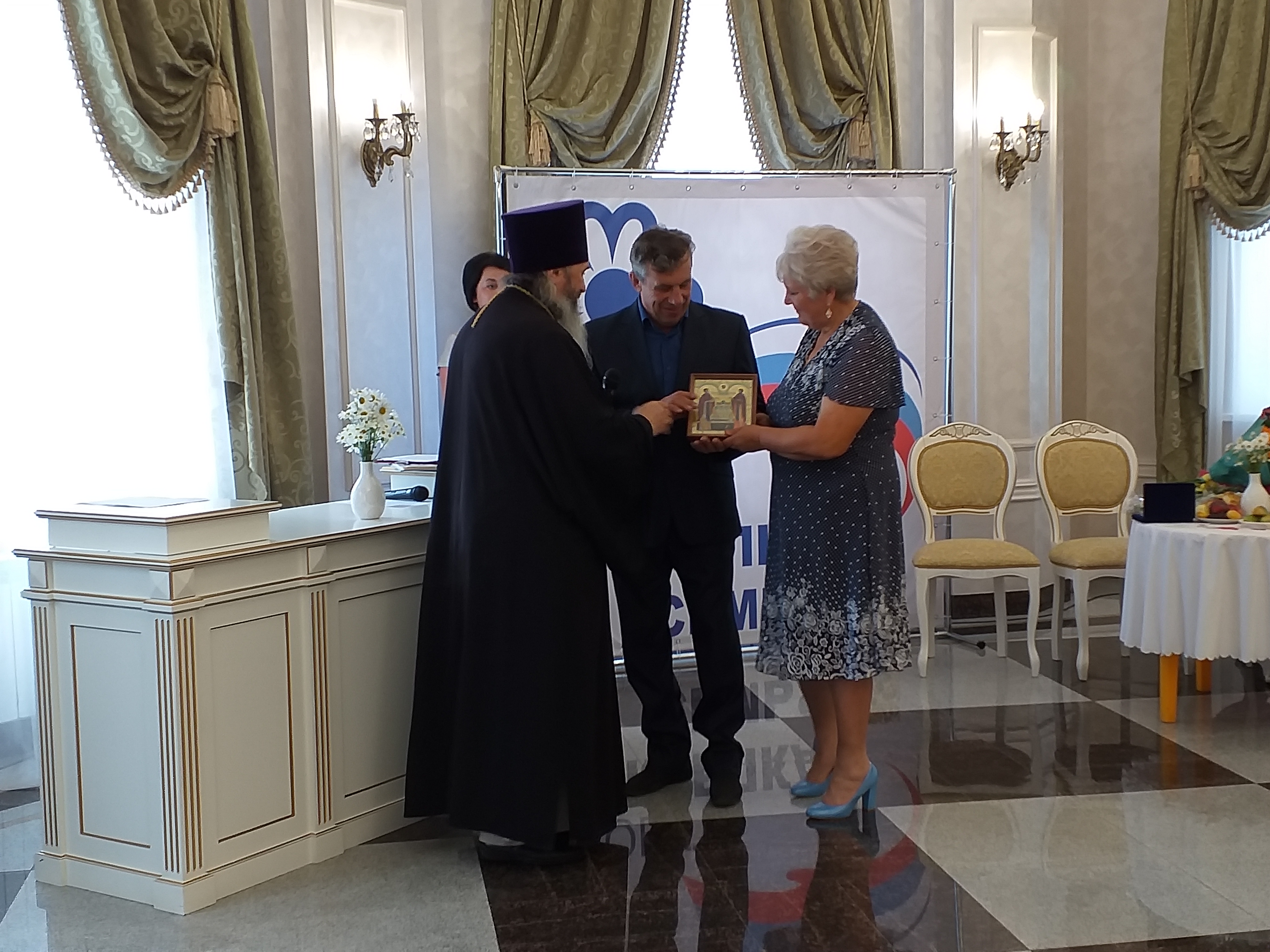 В церемонии награждения приняли участие заместитель главы муниципального образования город Лениногорск Рафикова Гульфира Мазитовна, начальник отдела ЗАГС Исполнительного комитета муниципального образования «Лениногосркий муниципальный район» Республики Татарстан Елена Яковлевна Миннигалямова, а также представитель духовенства- настоятель храма Святой Троицы г.Лениногорска протоиерей Иоанн Антипов. Они поздравили семью Вакулюк с праздником, пожелали долгих лет счастливой супружеской жизни и вручили им памятную медаль.