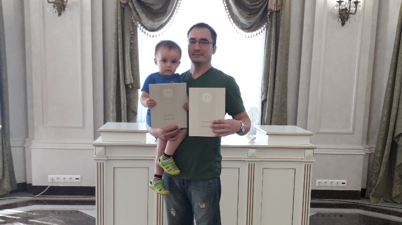 Специалисты Отдела ЗАГС Исполнительного комитета муниципального образования «Лениногорский муниципальный район» Республики Татарстан поздравили счастливых родителей с двойной радостью, вручили отцу первые государственные документы детей - свидетельства о рождении с поздравительными адресами Президента Республики Татарстан Р.Н. Минниханова и пожелали благополучия семье, достатка, мира и удачи, а также двойного терпения и понимания.