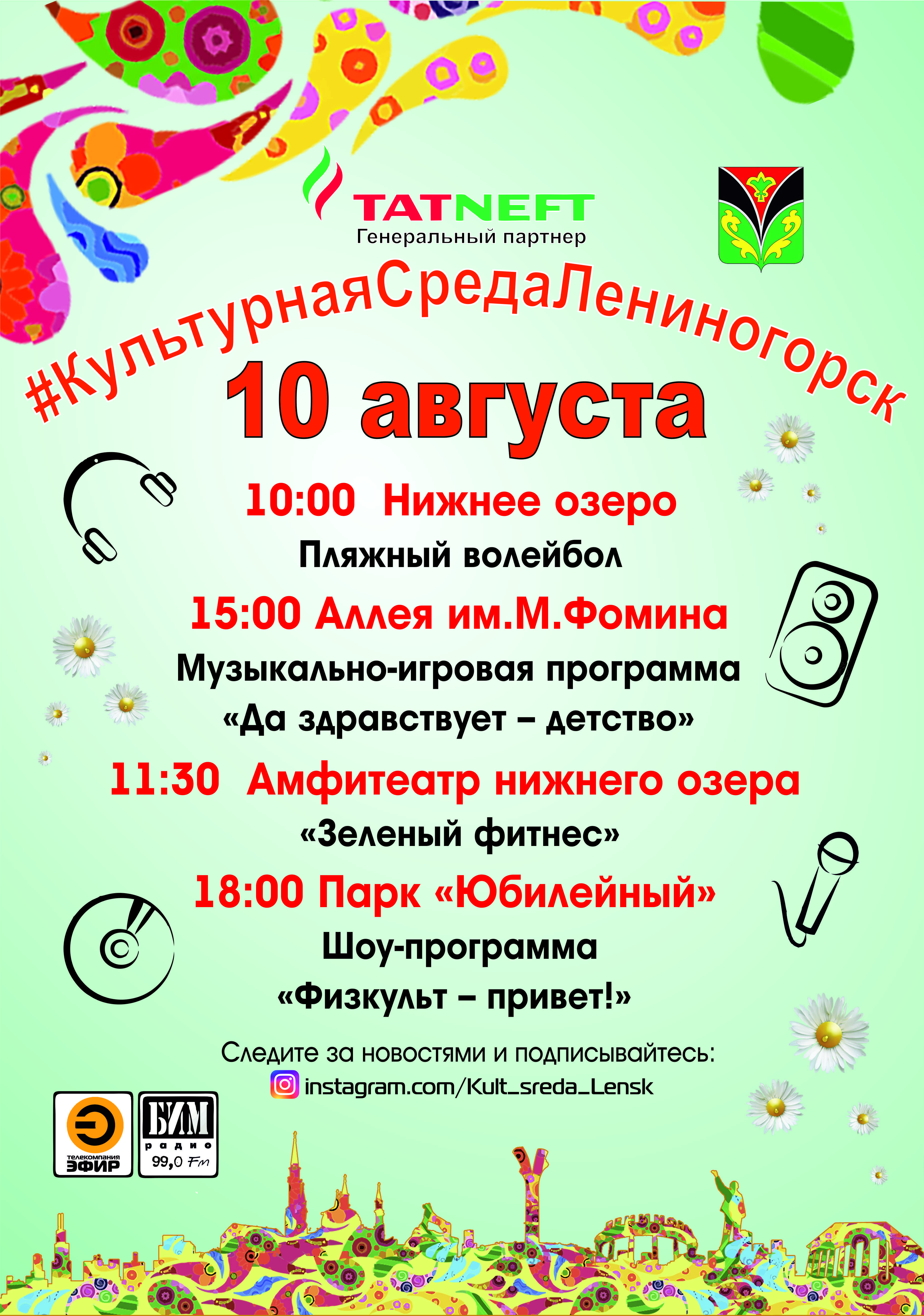 10 августа проект «Культурная среда города» вновь приготовил много интересного и приглашает всех посетить культурно-развлекательные мероприятия. Начало в 10.00.