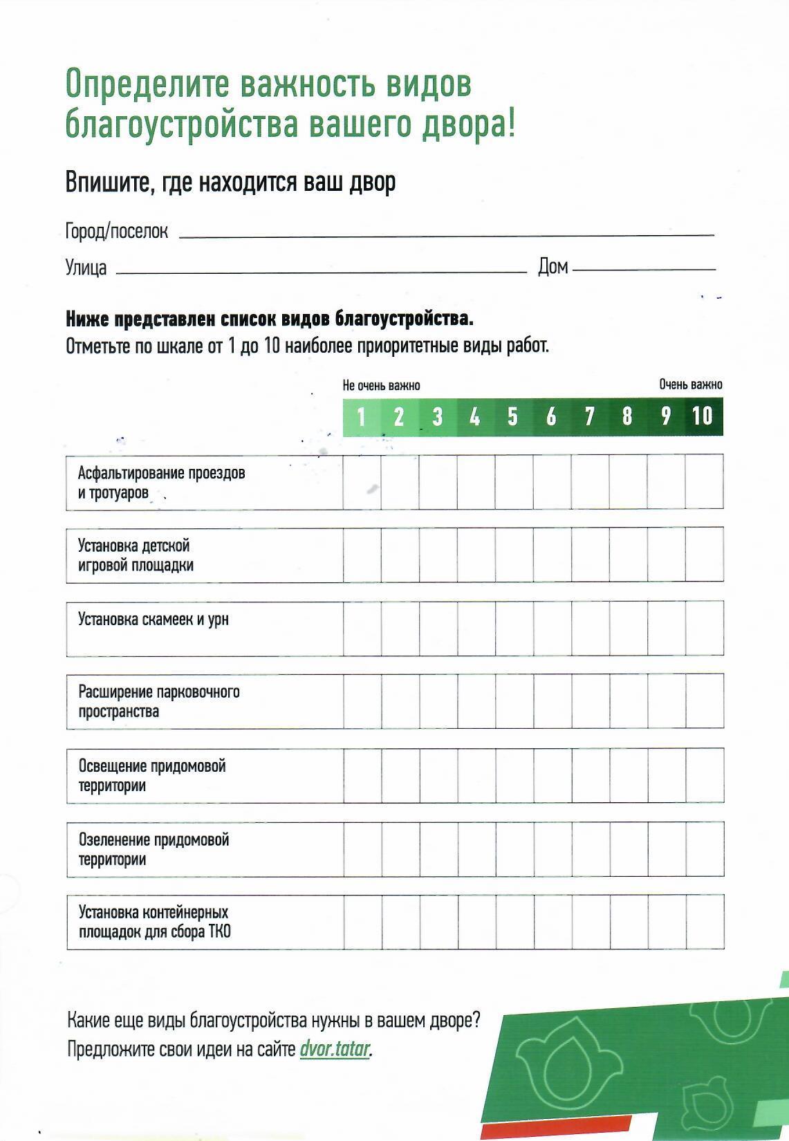 От активности жителей конкретных многоквартирных домов в опросе о благоустройстве их дворов будет зависеть очерёдность реализации проекта. Результаты анкетирования ожидаются в первой половине октября. С результатами анкетирования можно будет ознакомится на сайте dvor.tatar.