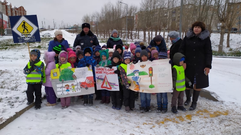 В рамках оперативно – профилактического мероприятия «Осенние каникулы» сотрудники ОГИБДД ОМВД России по Лениногорскому району, ГБУ «Безопасность дорожного движения» совместно с дошкольниками МБДОУ «ЦРР детский сад № 14 «Родничок»» МО «ЛМР» РТ провели акцию «Стань заметней на дороге!». Автоинспекторы акцентировали внимание водителей на том, что пешеходный переход – это место повышенной опасности, при приближении к которому водителю следует заранее снизить скорость условия видения и обзора.