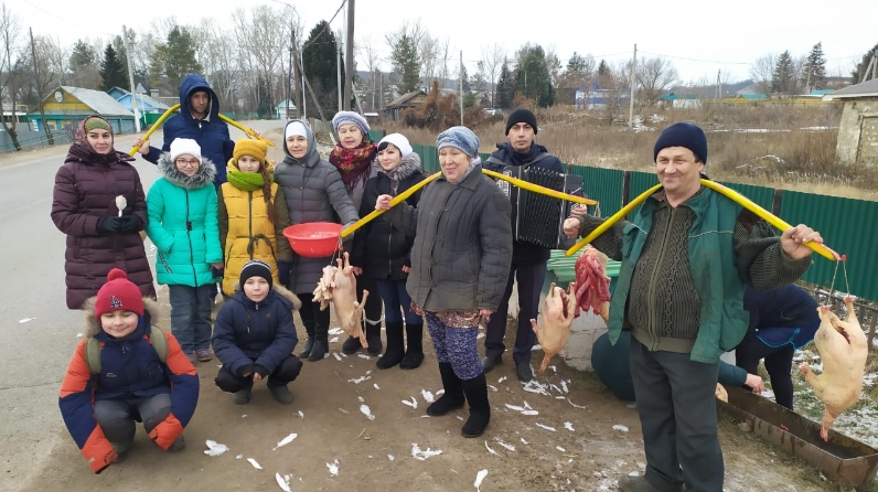 А процесс закончился тем, что все пошли с коромыслами, на которых висят тушки гусей к водоему, чтобы омыть их ледяной водой. Все это сопровождалось песнями и шутками. Вспомнили старинные игры «Чума үрдәк, чума каз», «Капкалы», «Табышмак әйтеш».