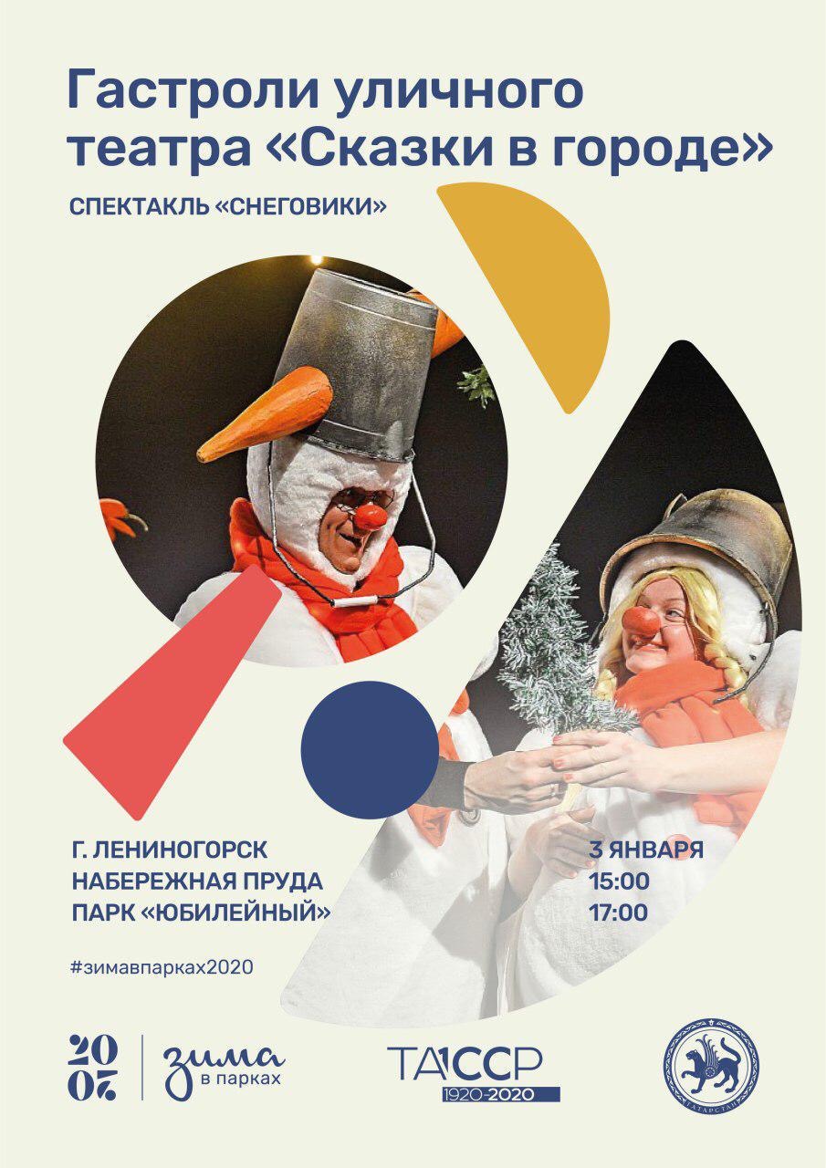 3 января к нам, в любимый город Лениногорск в рамках проекта «Сказки в городе» при поддержке Президента Республики Татарстан Р.Н.Минниханова состоится выступление гастролирующего уличного театра с представлением «Снеговики»! Они выступят на двух площадках нашего города: