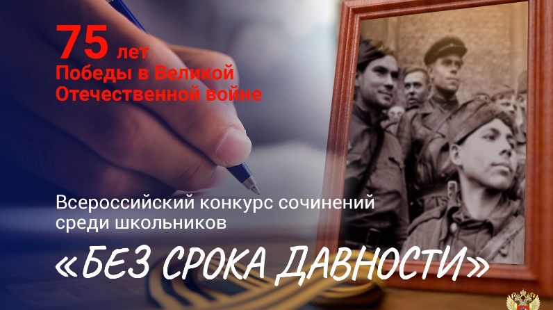 Стартовал Всероссийский конкурс сочинений среди обучающихся общеобразовательных организаций «Без срока давности», приуроченный к проведению в России в 2020 году Года памяти и славы.