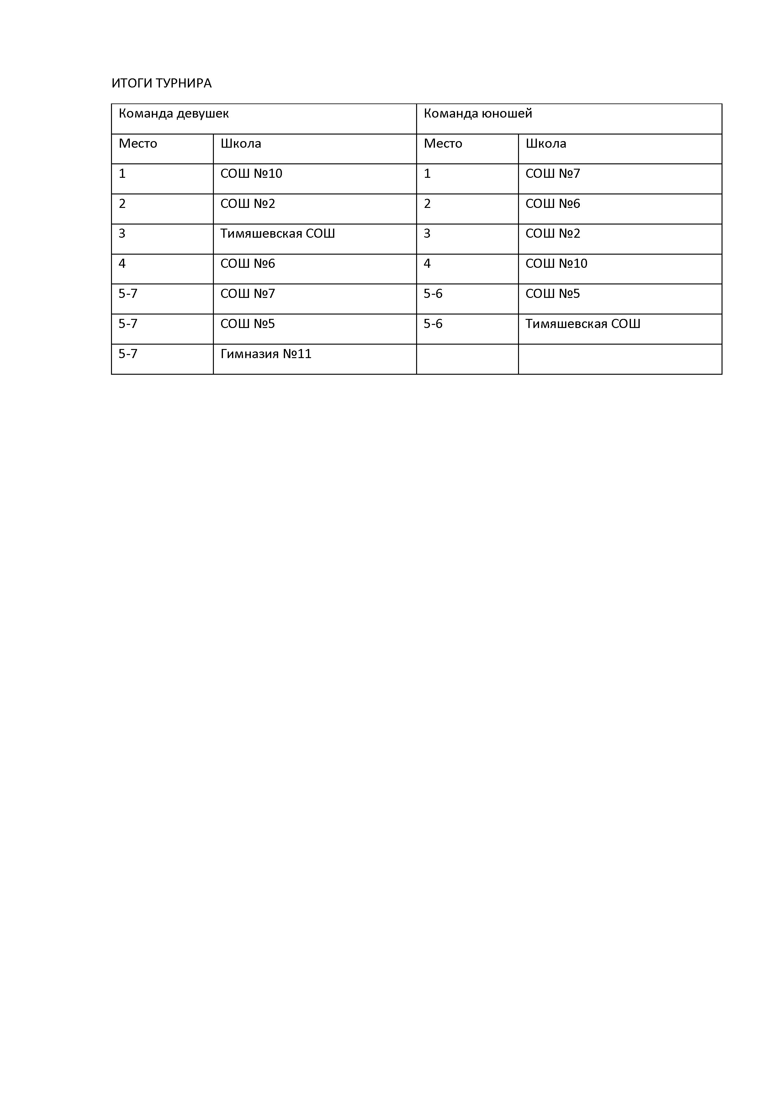 В турнире приняли участие 7 команд девушек, 6 команд юношей из МБОУ «СОШ №2» (юноши, девушки), «СОШ №5» (юноши, девушки), «СОШ №6» (юноши, девушки), «СОШ №7» (юноши, девушки), «СОШ №10» (юноши, девушки), «Гимназия №11» (девушки), «Тимяшевская СОШ» (юноши, девушки). Всего в турнире приняли участие более 130 школьников.