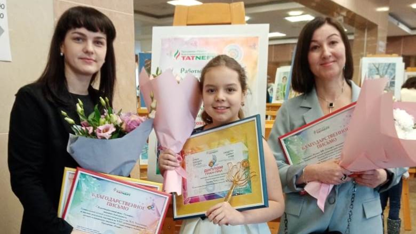 На гала-концерт были приглашены Эвелина Хайруллина - обладатель ГРАН-ПРИ в номинации «Художественное творчество», преподаватель Э.Р.Галлямова и директор школы О.А.Мишева. Все они отмечены памятными подарками с символикой фестиваля и денежными призами.