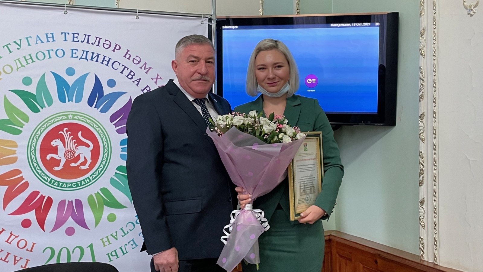 Работа «делового понедельника» началась с награждения воспитателя детского сада №10 Виктории Цыгановой. Глава района Рягат Хусаинов вручил Благодарственное письмо аппарата Совета Виктории Цыгановой за достойное участие и высокий результат в заключительном этапе XII Всероссийского профессионального конкурса «Воспитатель года России» в 2021 году.