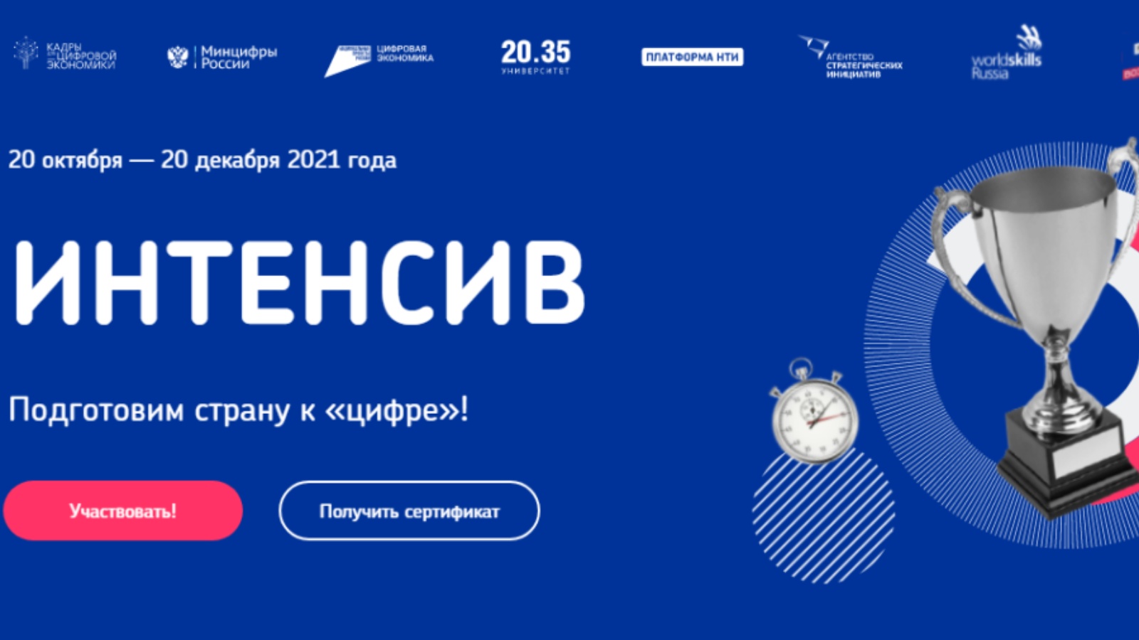 Минцифры России совместно с АНО «Университет Национальный технологической инициативы 2035» проводит интенсив по развитию и оценке цифровых компетенций «Готов к цифре!» с 20 октября по 20 декабря 2021 г. в рамках реализации федерального проекта «Кадры для цифровой экономики» национальной программы «Цифровая экономика Российской Федерации».