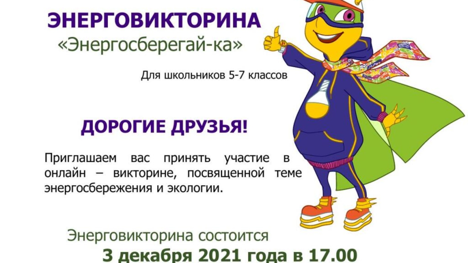 Энерговикторина состоится 3 декабря 2021 года в 17.00 среди учащихся
