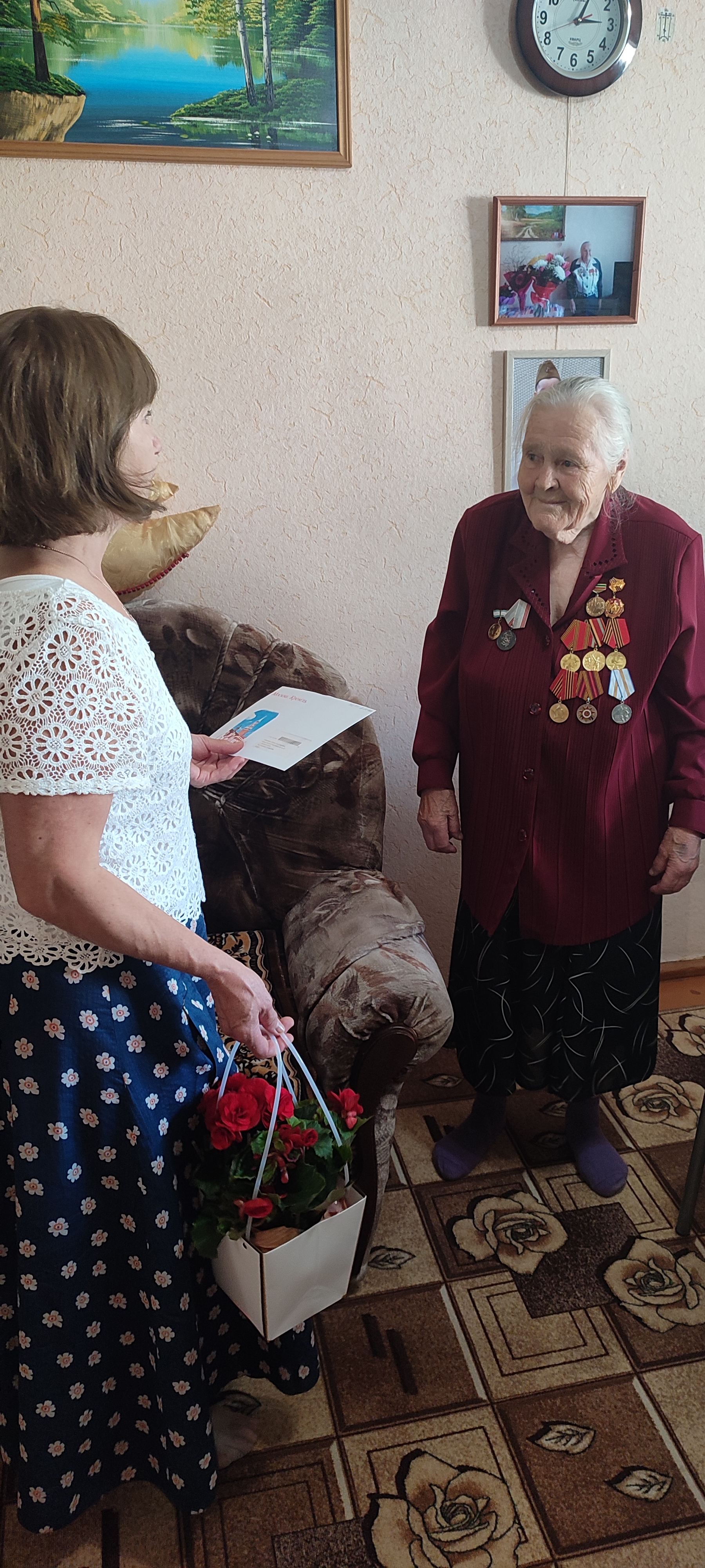 Юбиляршу с этим знаменательным событием поздравила заместитель Главы города Лениногорск Гульфира Рафикова. Гульфира Мазитовна пожелала юбилярше здоровья, долгих лет жизни, вручила подарки и персональное поздравление Президента РФ В.В.Путина.
