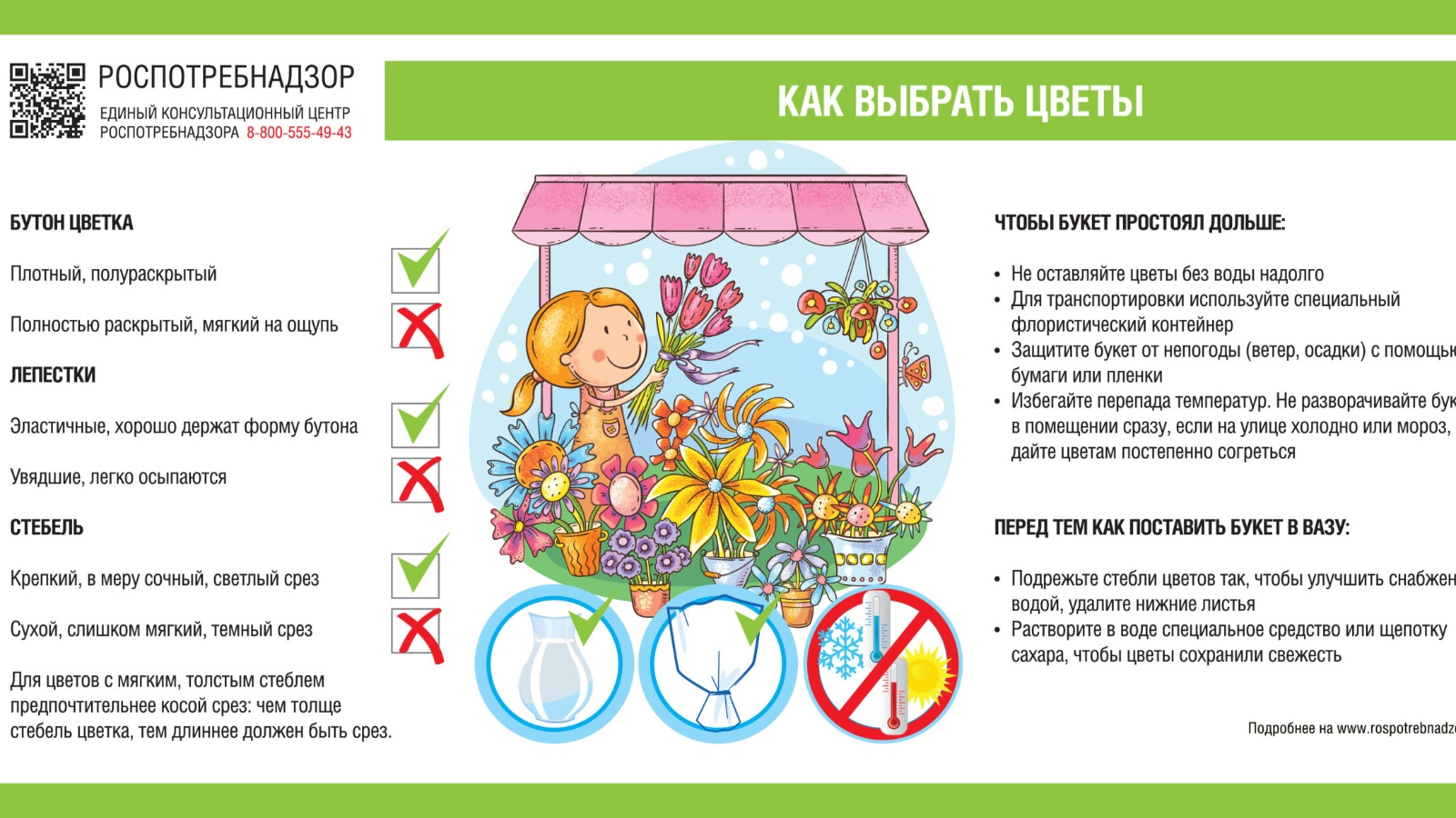 Роспотребнадзор напоминает о правилах выбора живых цветов. Живые цветы – непременный атрибут любого праздника, который создает нужное настроение. Чтобы букет дольше оставался свежим, важно учитывать свежесть каждого цветка и правильные условия хранения.