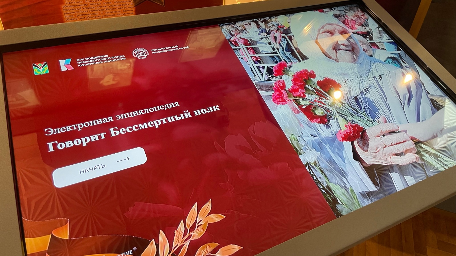Электронная энциклопедия «Говорит Бессмертный полк» родилась из музейного одноименного интернет-проекта, существующего на сайте учреждения и тиражируемого на официальных страницах в Вконтакте и Одноклассниках. В нем публикуются воспоминания участников Великой Отечественной войны и рассказы жителей города о ветеранах Лениногорского района. Идея получила большой отклик населения. Теперь в виде электронной книги в зале Памяти собранные материалы станут более доступными. Проект реализуется при поддержке Президентского фонда культурных инициатив. Сумма гранта потрачена на приобретение и наполнение интерактивного комплекса электронной энциклопедии.