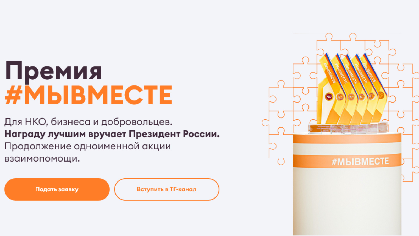 Подробная информация и подача заявки премия.мывместе.рф Прием заявок продлится до 15 мая.