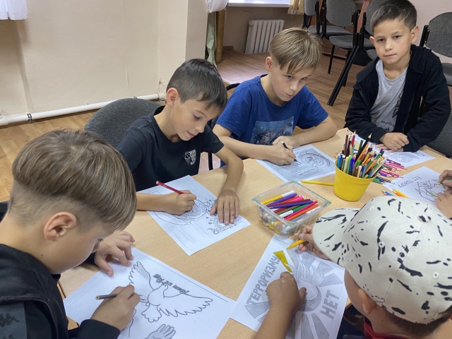 В начале мероприятия участникам был продемонстрирован видеоролик «Мы за мир на всей Земле» с последующим его обсуждением. Видеоролик помог осознать ребятам, что бдительность и неравнодушие – залог общей безопасности. В завершение ребята с удовольствием приняли активное участие в конкурсе рисунков. В своих работах они смогли выразить свои мысли и идеи через искусство и передать их окружающим.