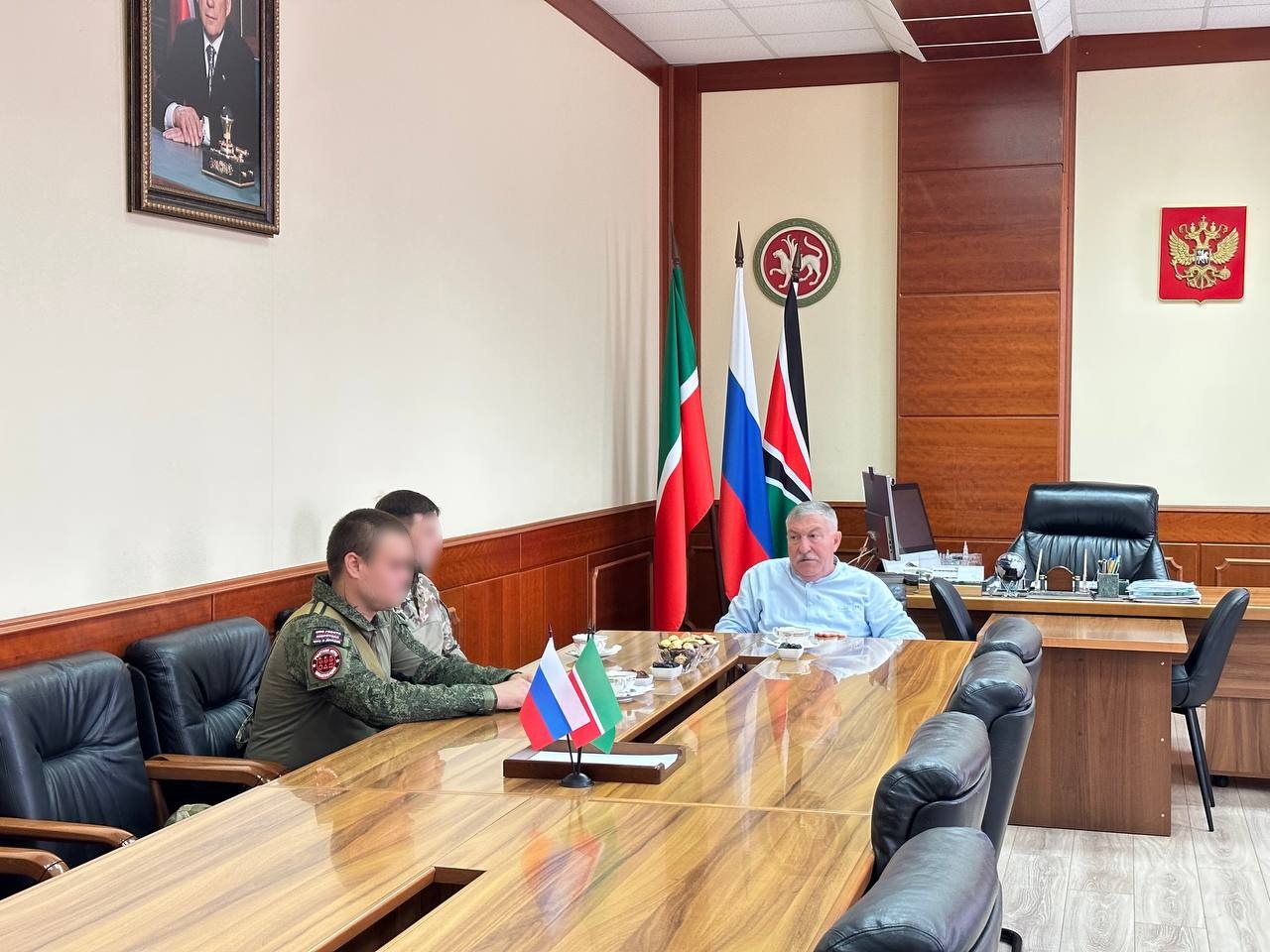 В завершении встречи Глава Рягат Хусаинов выразил слова благодарности и признательности, пожелал побыстрее вернуться с победой и приступить к мирной жизни.