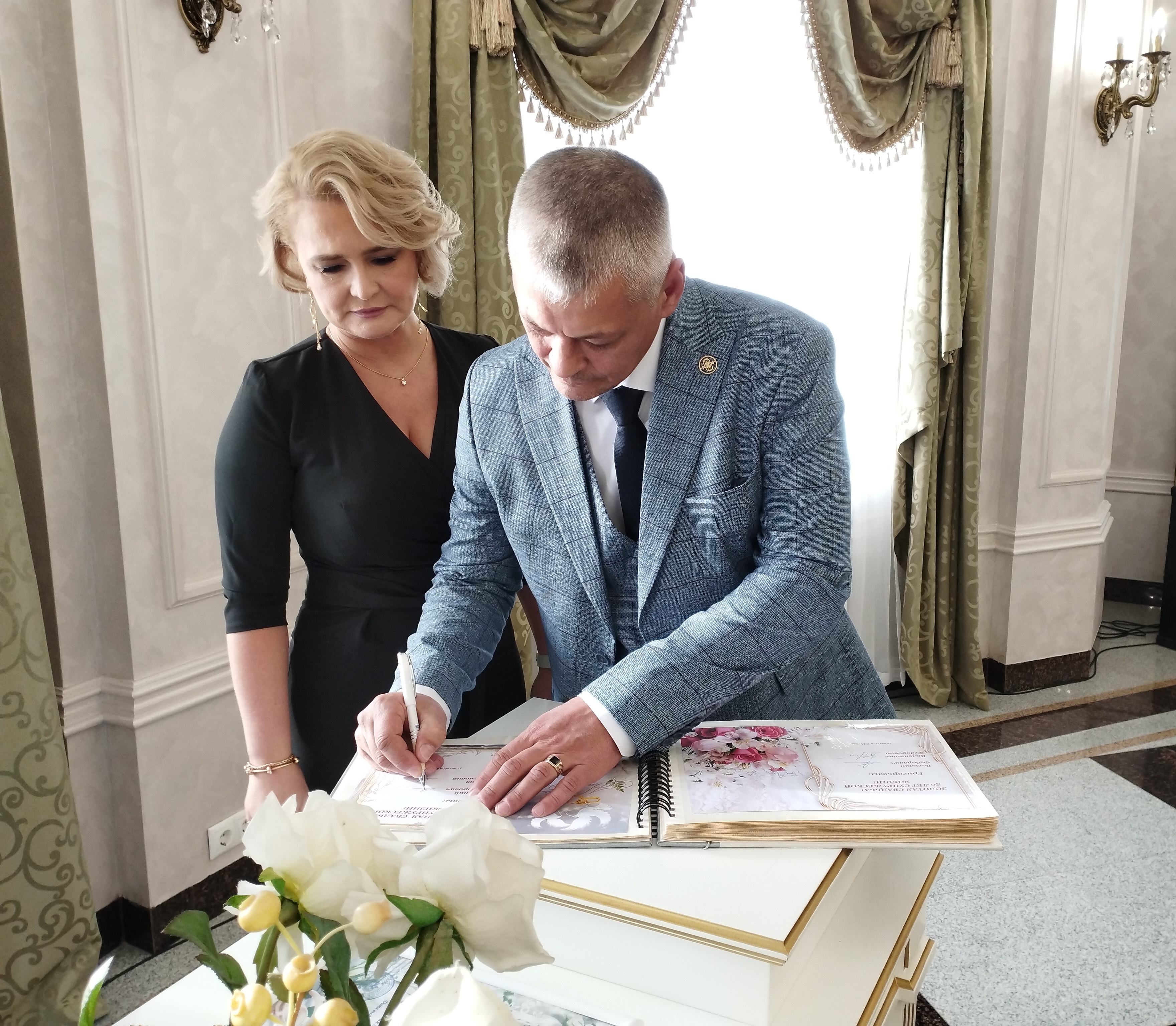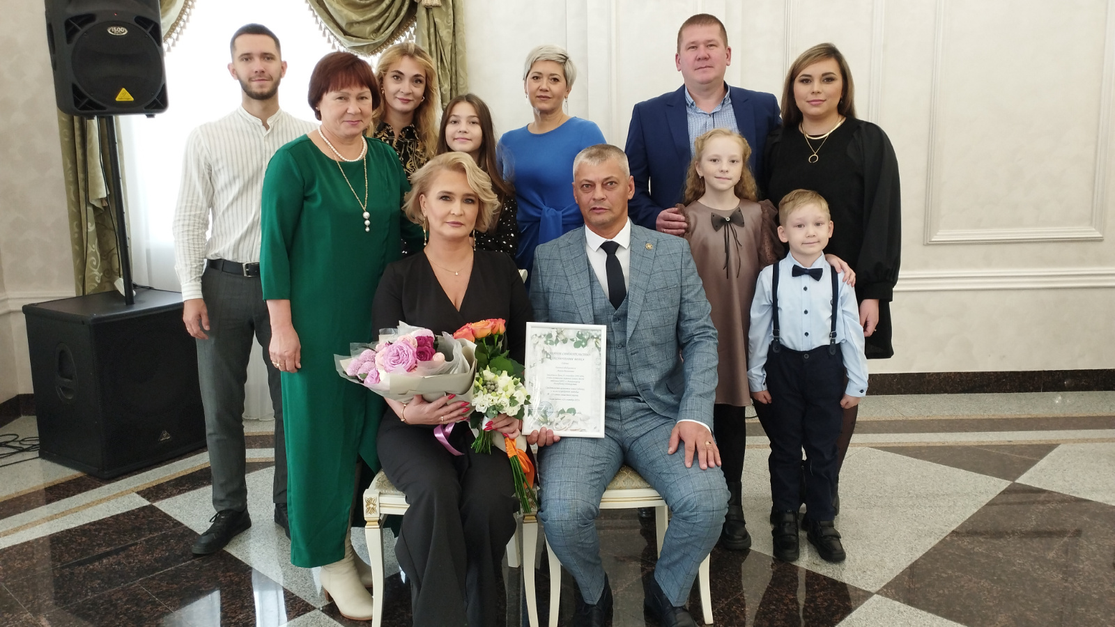 На торжественной церемонии юбиляры вошли в зал под звуки свадебного марша, обменялись обручальными кольцами и поставили подписи в книге почетных юбиляров Лениногорского муниципального района. От имени руководителя отдела ЗАГСа, семье Садовых было вручено памятное юбилейное свидетельство.