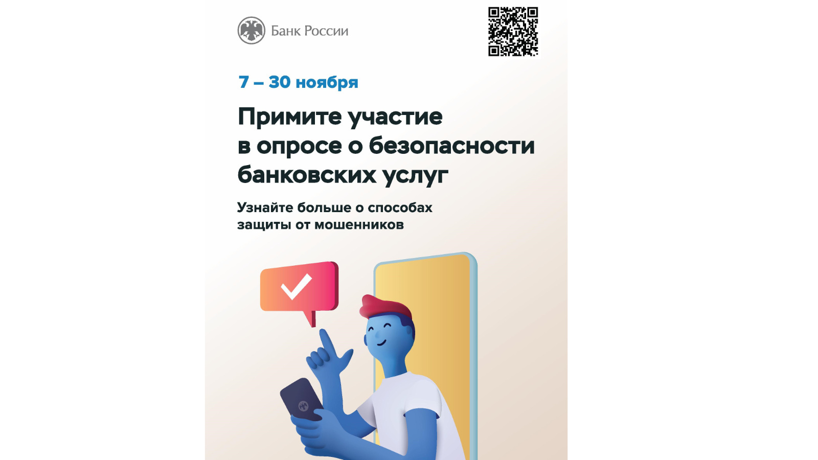 Настоящий опрос будет проводиться в период с 07.11.2023 по 30.11.2023 посредством заполнения соответствующих обезличенных опросных форм, размещеных на официальном сайте Банка России.