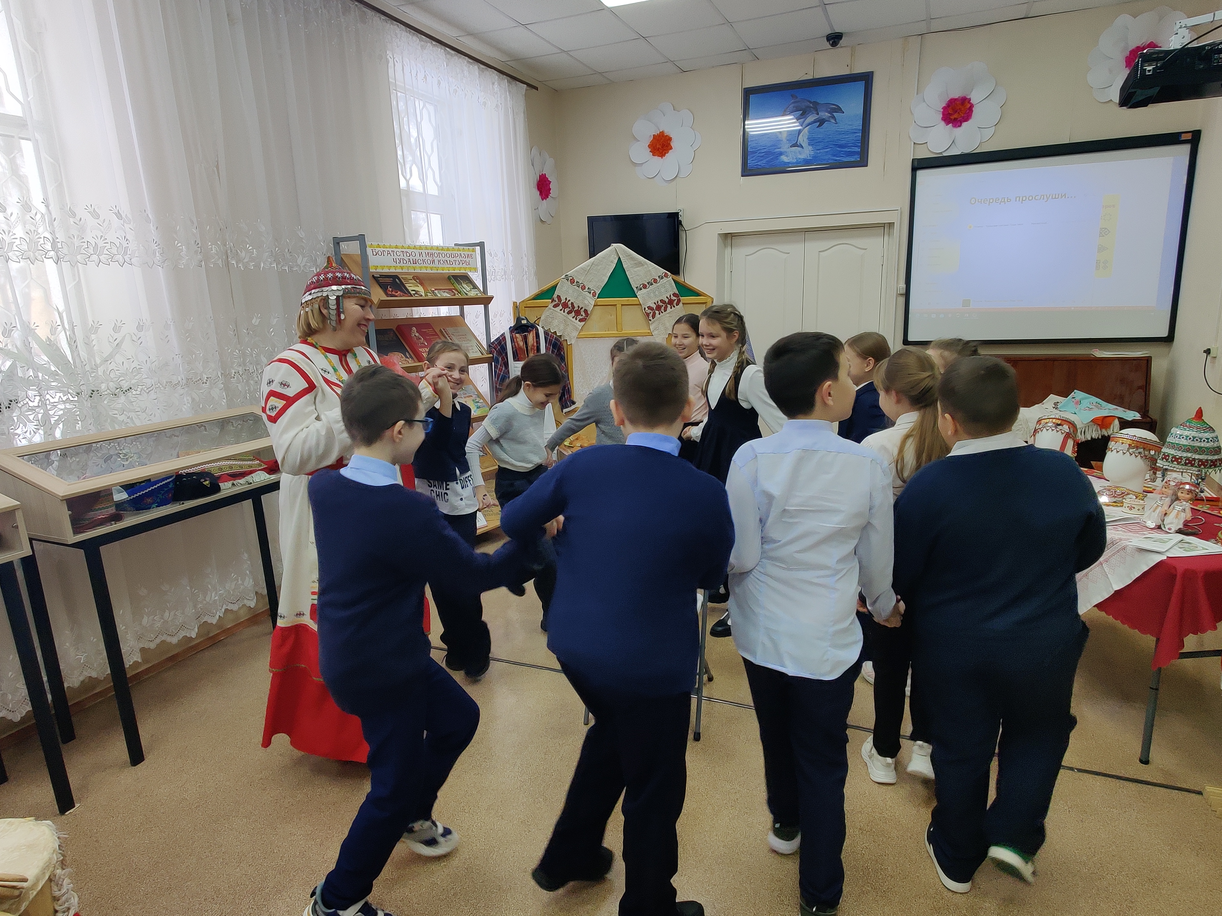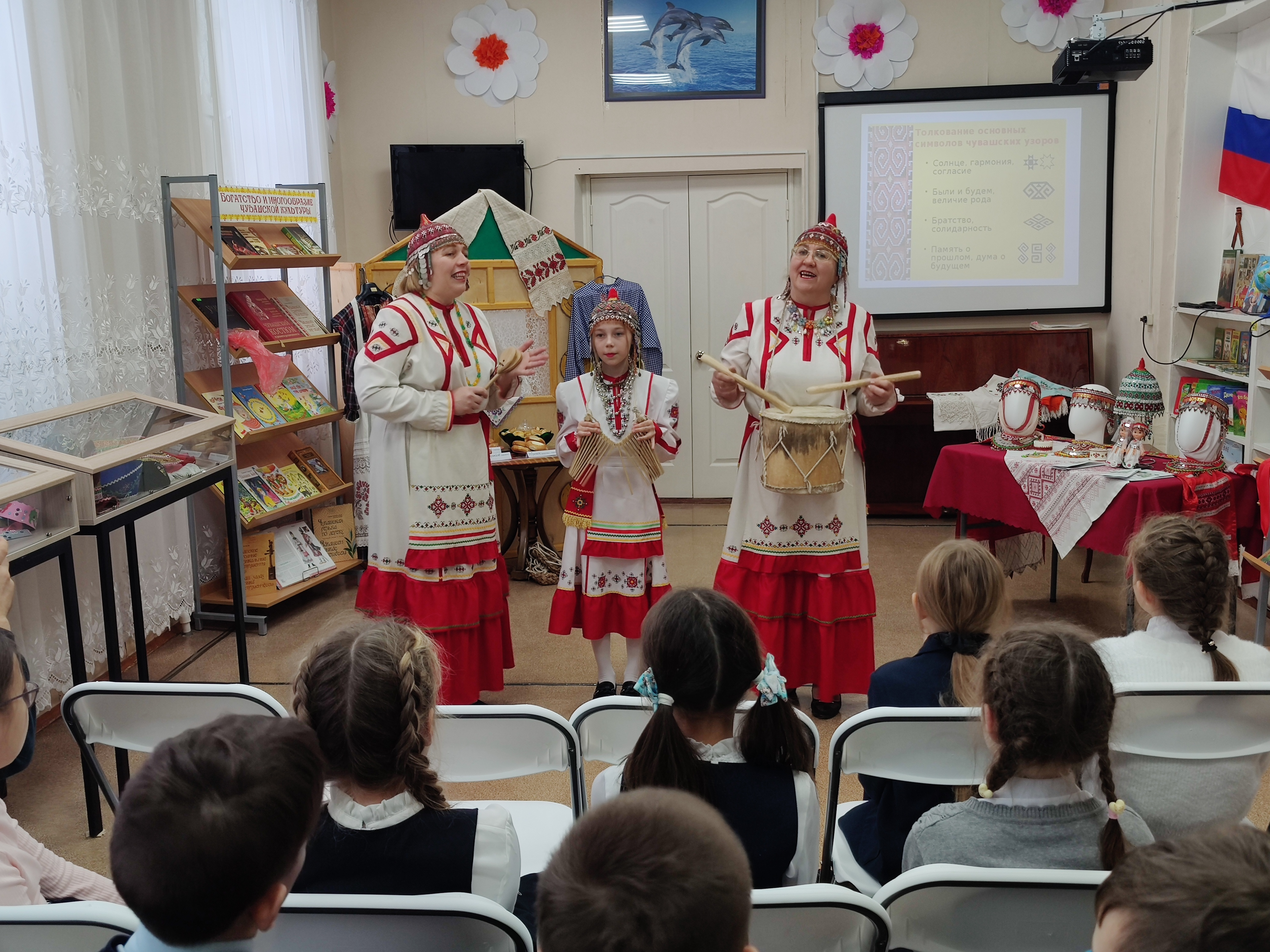 Библиотекари Центральной городской детской библиотеки им. Ю. Гагарина, в рамках реализации проекта «Фестиваль народной книги», поддержанного грантом Президентского фонда культурных инициатив, для учащихся 4А класса школы №6 провели фольклорный праздник «Традиции и обряды чувашского народа».