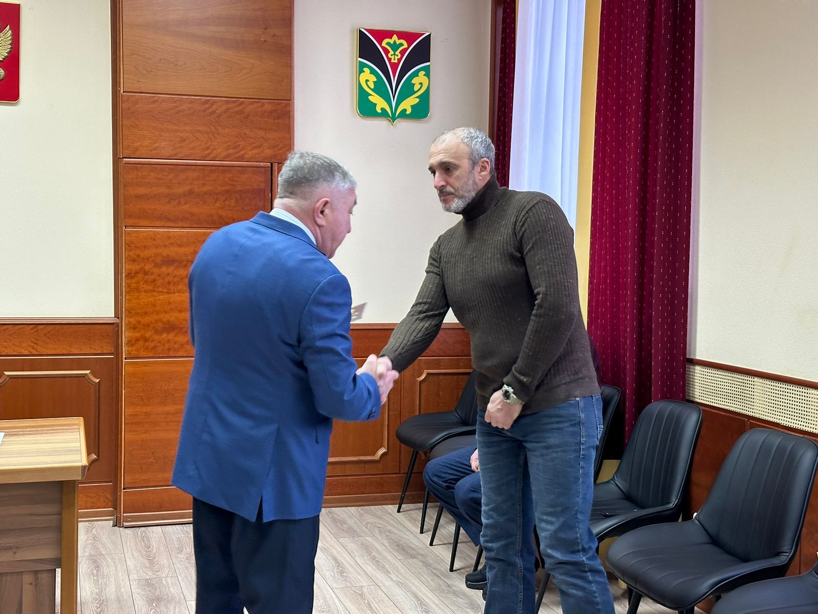 Глава района также вручил удостоверение ветерана боевых действий старшему сержанту Михаилу Ивановичу Конахину, который проходил военную службу по контракту. За боевые заслуги в феврале текущего года он был награжден Орденом «Ахмат-Спецназ» Чеченской Республики.