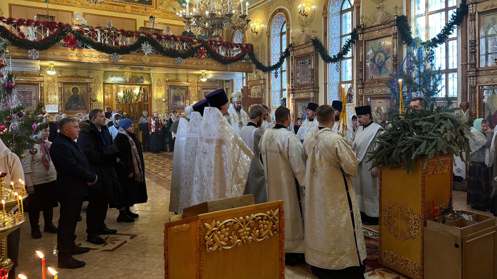После отпуста Литургии духовенство совершили славление праздника Рождества Христова.