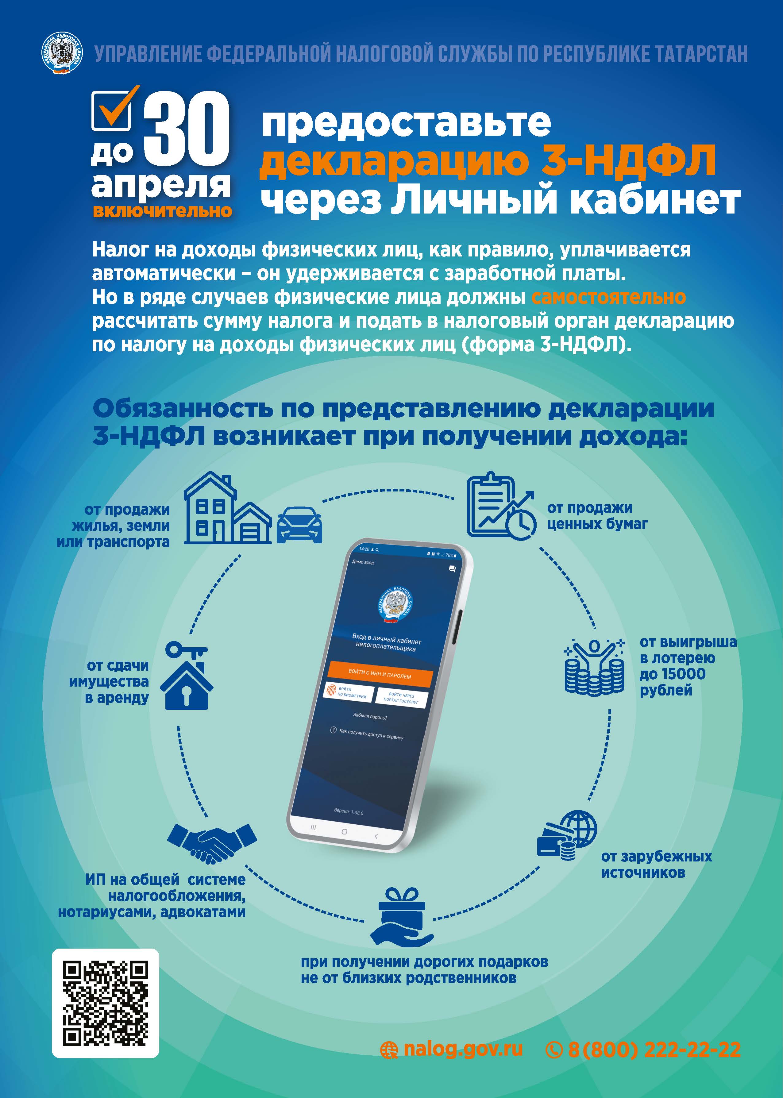Отчитаться о доходах необходимо, если в 2023 году налогоплательщик, к примеру, продал недвижимость, которая была в собственности меньше минимального срока владения, получил дорогие подарки не от близких родственников, выиграл небольшую сумму в лотерею, сдавал имущество в аренду или получал доход от зарубежных источников.