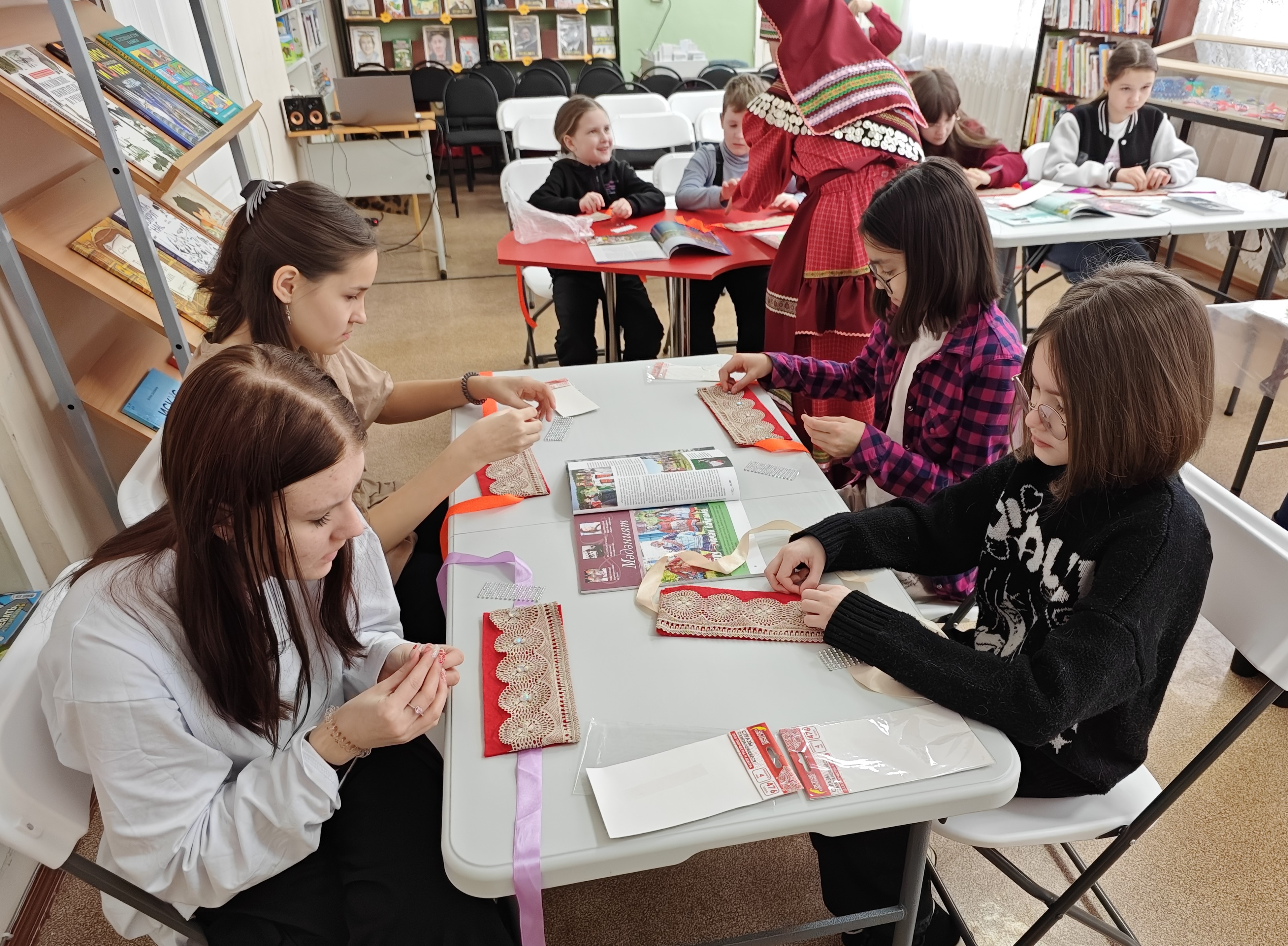 В Центральной городской детской библиотеке им. Ю. Гагарина в рамках реализации проекта «Фестиваль народной книги», поддержанного Грантом Президентского фонда культурных инициатив, с активными читателя библиотеки провели мастер-класс «Головной убор кряшен - суряке».