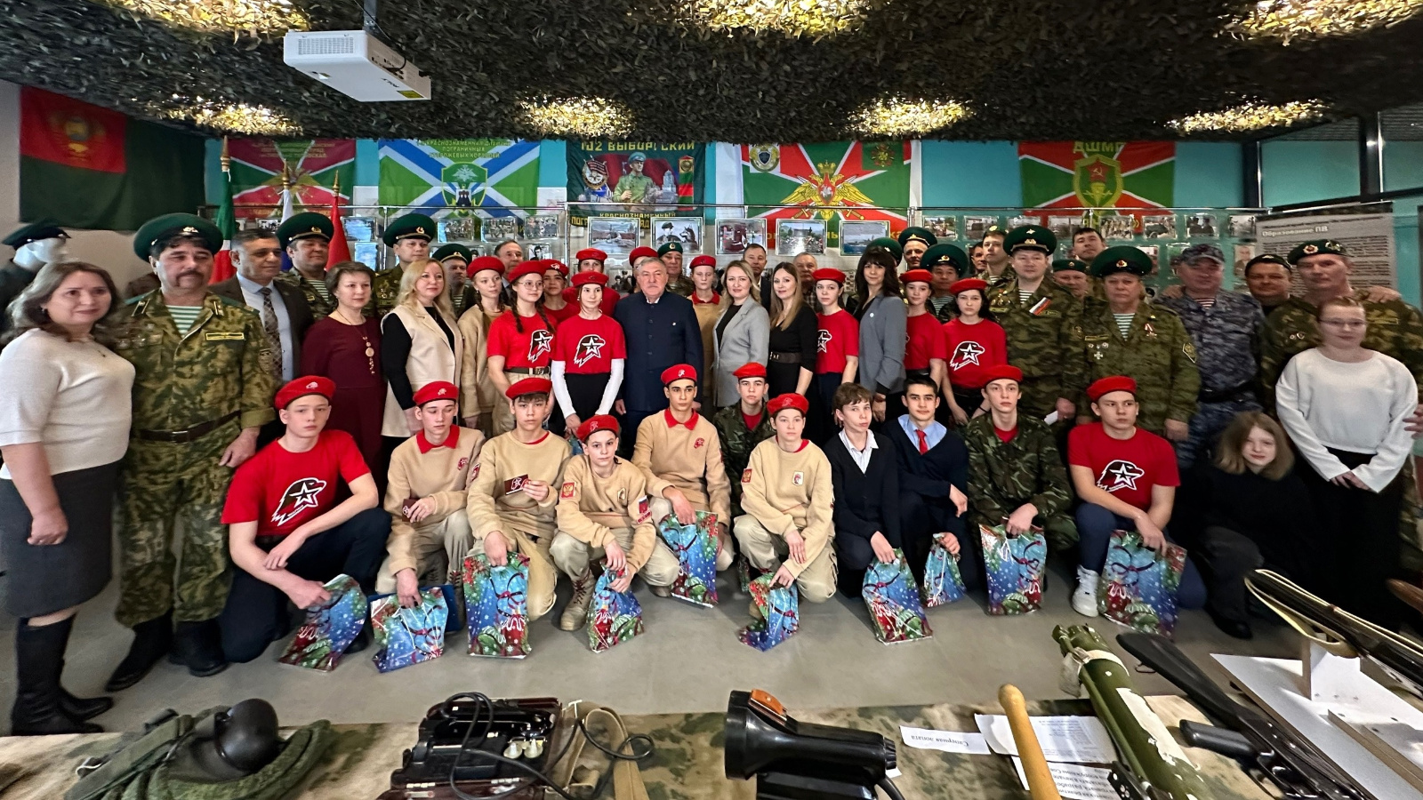 О выставке приглашенным рассказал председатель Содружества пограничников Артем Сарбаев. Затем все присутствующие ознакомились с экспонатами мобильного музея.
