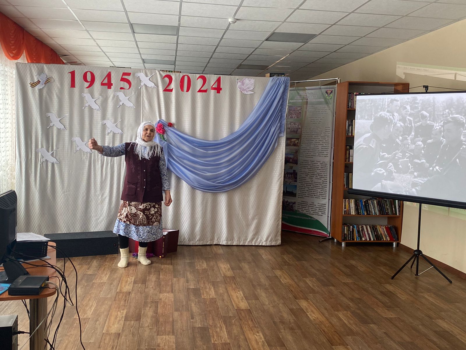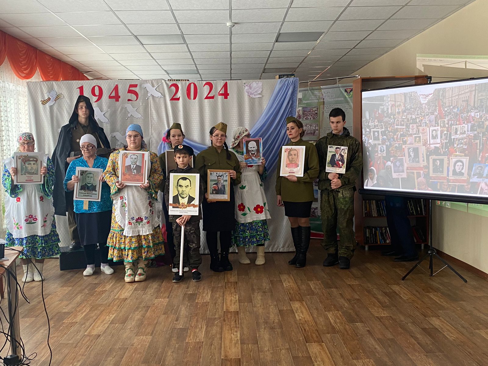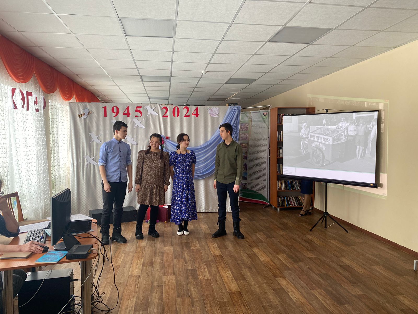 Участники мероприятия проследили основные этапы Великой Победы по главным вехам: начиная с 22 июня 1941 года, блокада Ленинграда и заканчивая водружением флага над Рейхстагом.