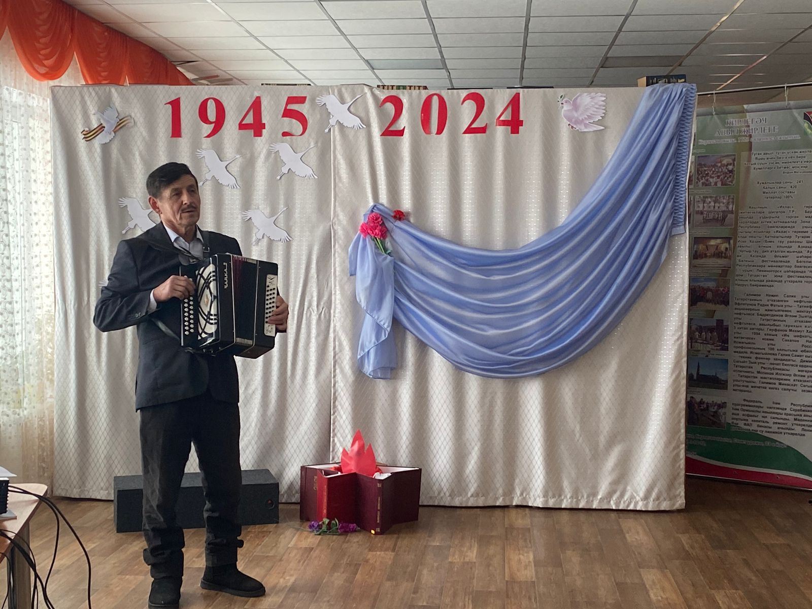 И первая остановка в селе Керлигач. Урмышлинская, Сарабикуловская и Керлигачская сельские библиотеки представили литературно-музыкальную композицию «Мәңге сүнми торган хәтер».