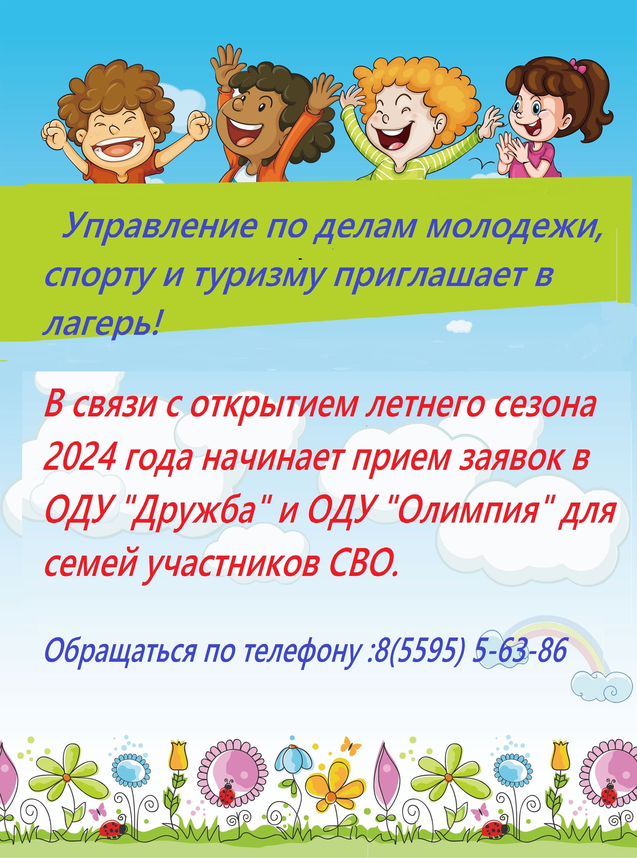 В связи с открытием летнего сезона 2024 года начинает прием заявок в лагеря «Дружба» и «Олимпия» для семей участников СВО.