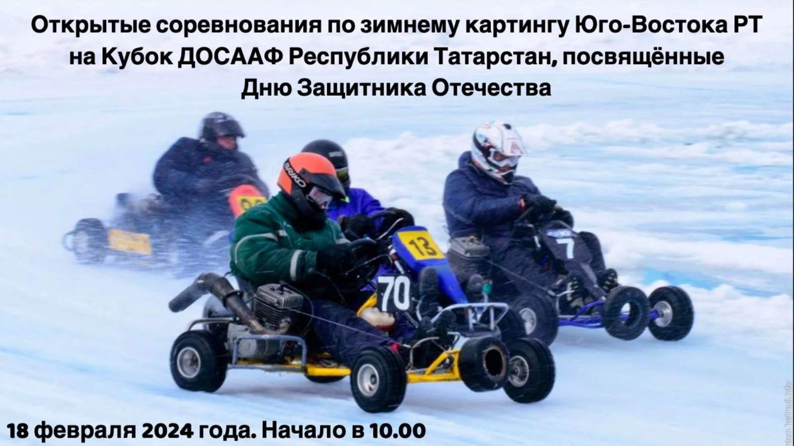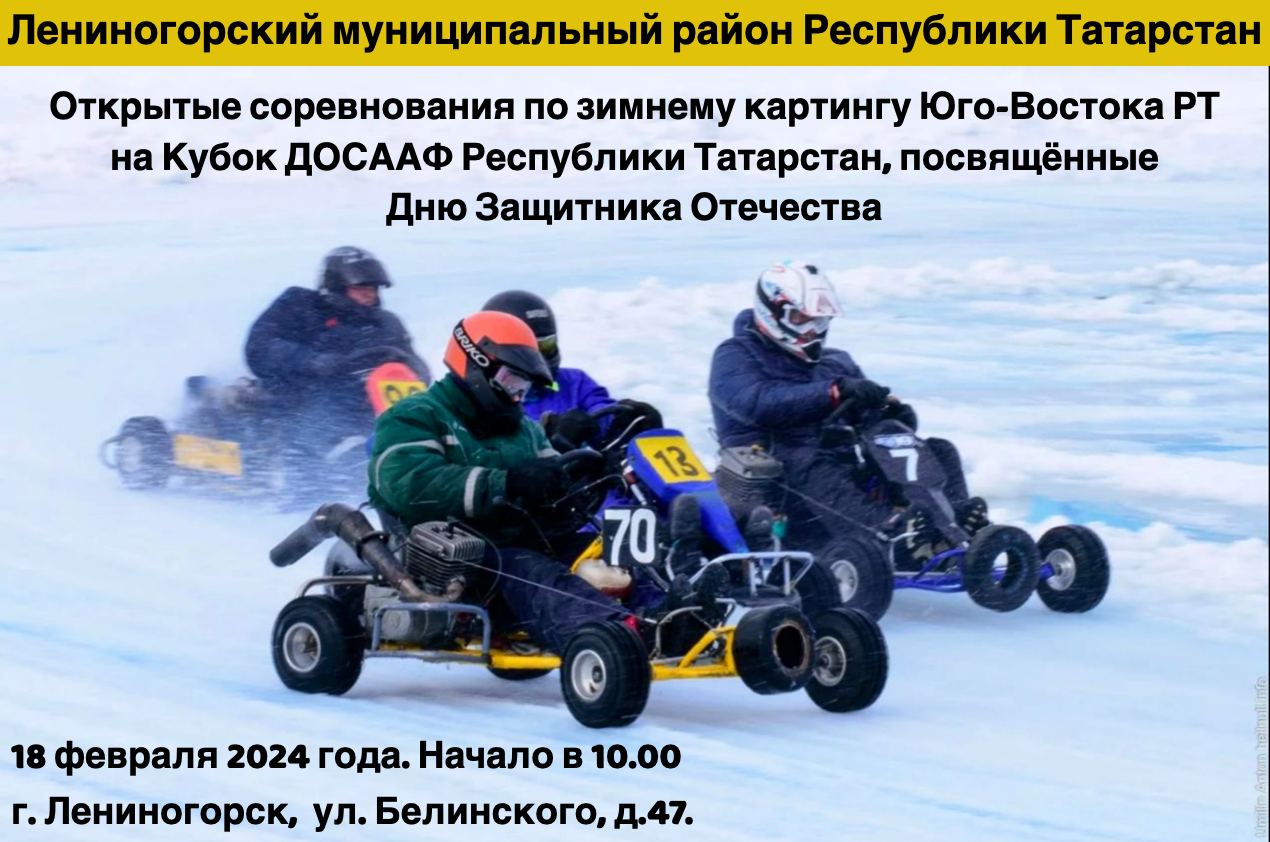18 февраля в Лениногорске состоятся открытые соревнования по зимнему картингу юго-востока РТ на Кубок ДОСААФ Республики Татарстан, посвященные Дню защитника Отечества.