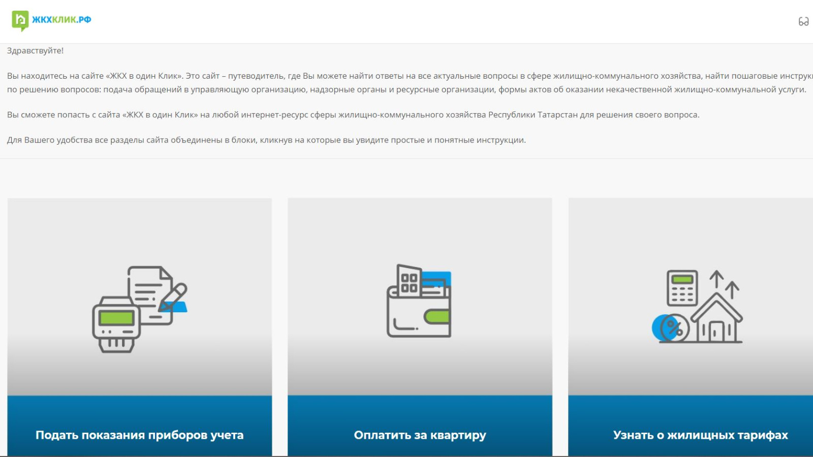 Данный проект позволит, выполнив пошаговую инструкцию, с одного сайта попасть на любой интернет-ресурс сферы ЖКХ РТ в зависимости от предмета вопроса, который необходимо решить жителю.