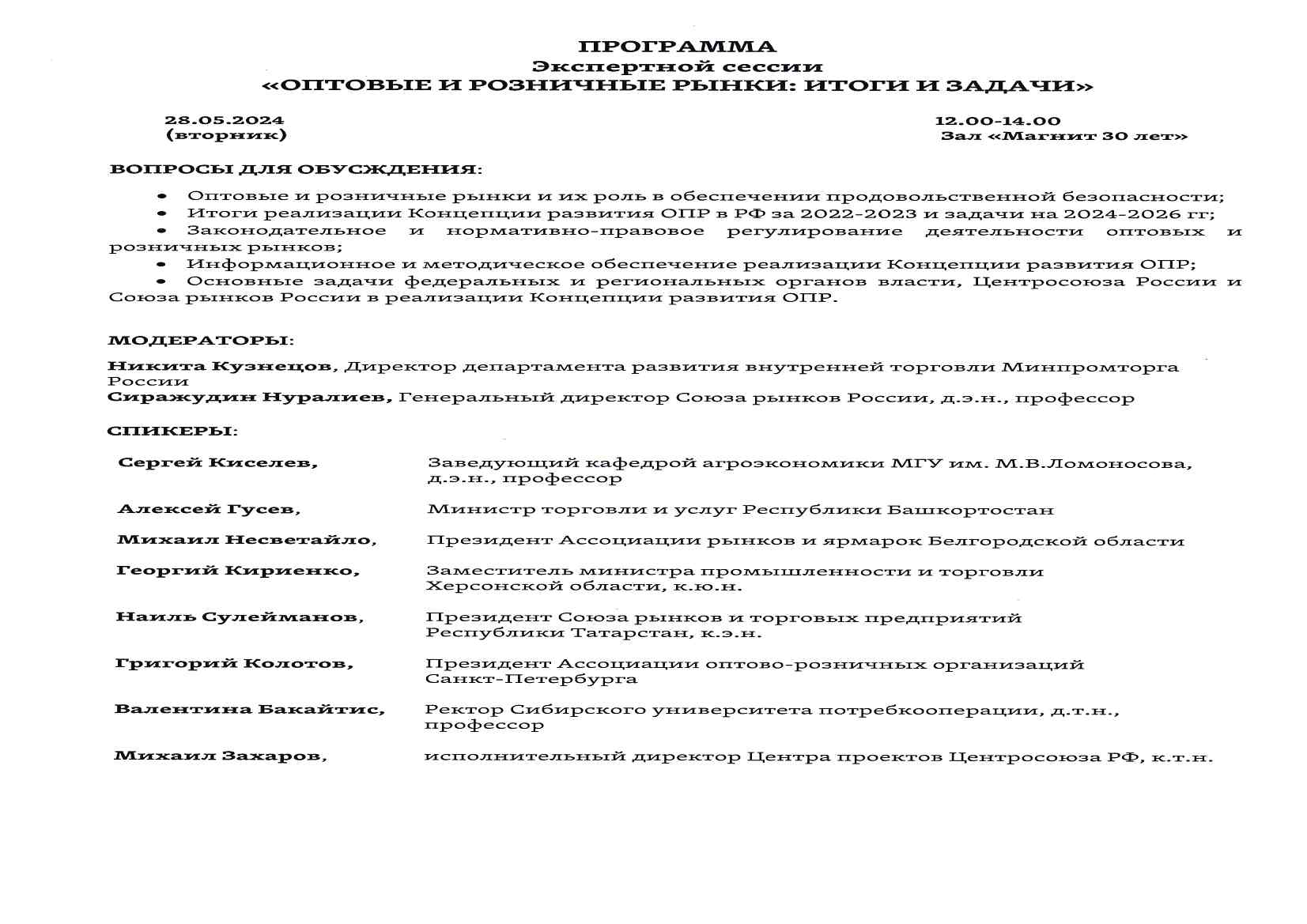 В 2024 году лениногорцы могут принять участие в экспертной сессии «Оптовые и розничные рынки: проблемы, итоги и задачи», которая состоится в г. Москве 28 мая 2024 года в рамках Межрегионального форума бизнеса и власти «Неделя Российского Ритейла».